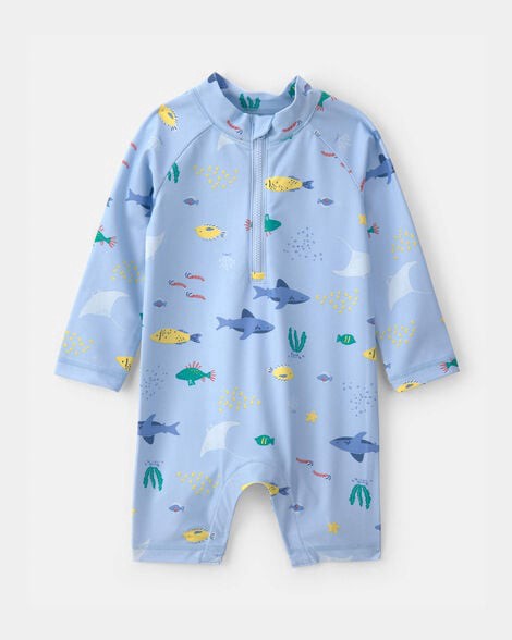 Carter's Baby Boy 1-Piece Fish Rashguard Swimsuit - Blue, 18 Months