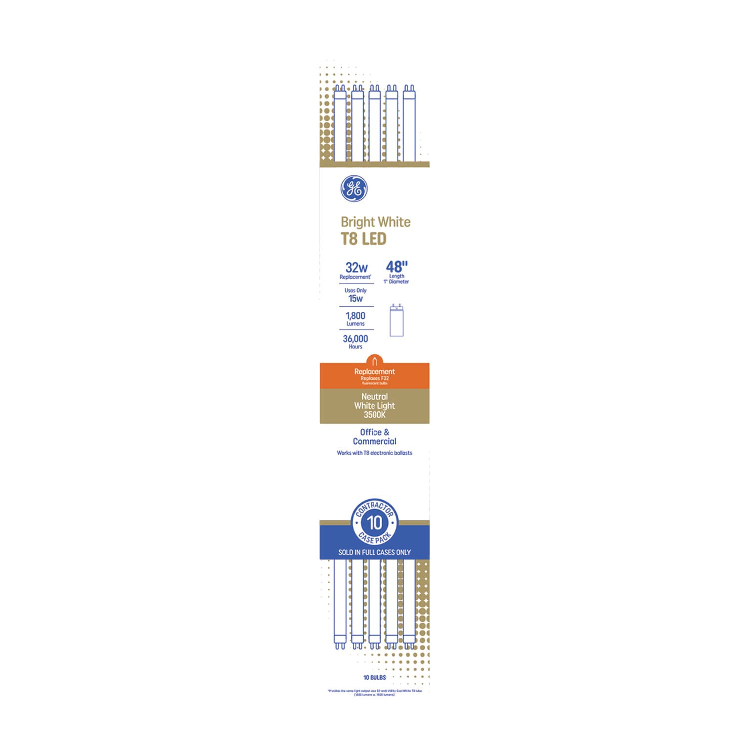GE 32 -Watt EQ T8 Bright white Medium bi-pin base G13 LED Tube Light Bulb 10 -Pack