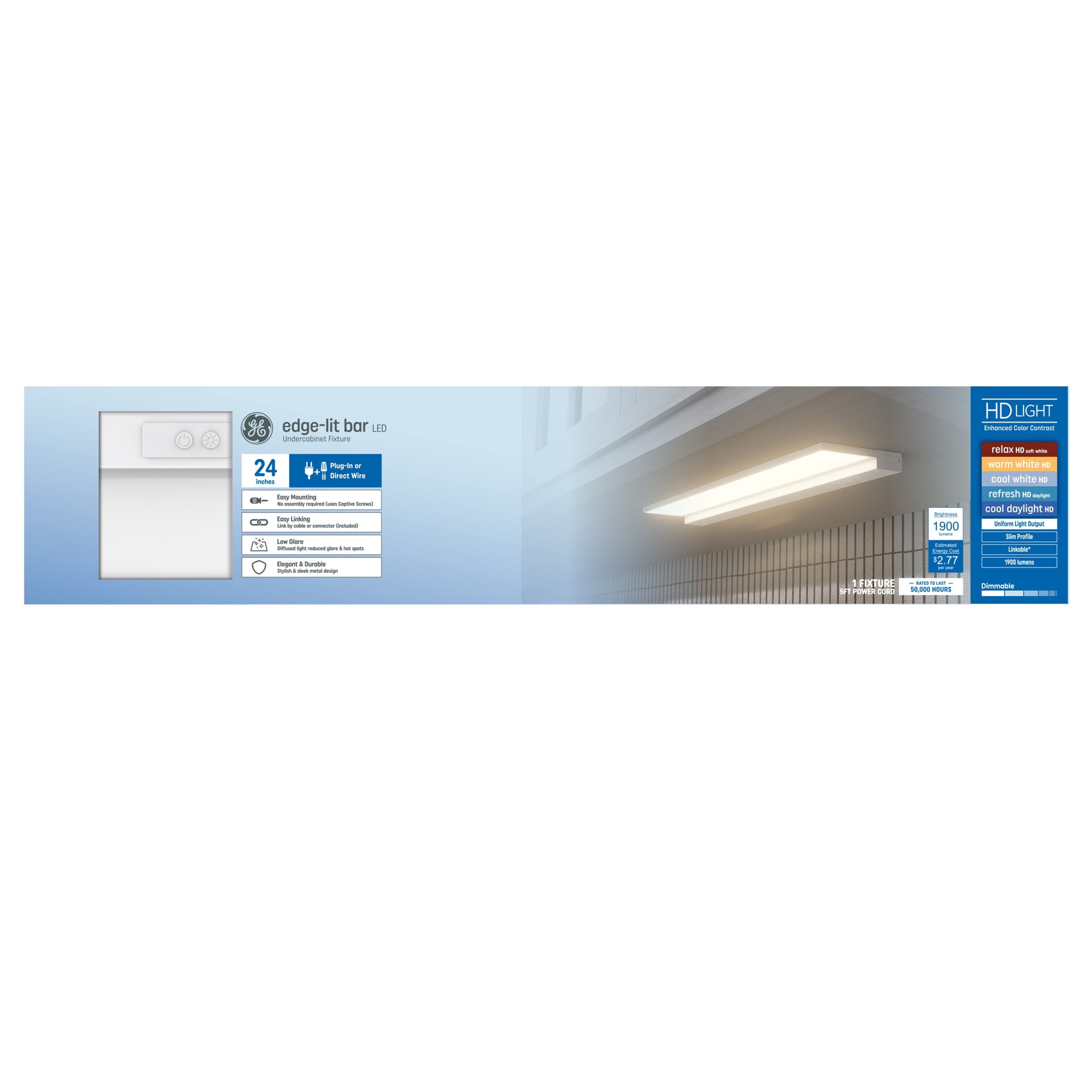 GE HD Edge-Lit Undercabinet Hardwired/Plug-In 24-in Hardwired/Plug-in LED Under Cabinet Light Bar