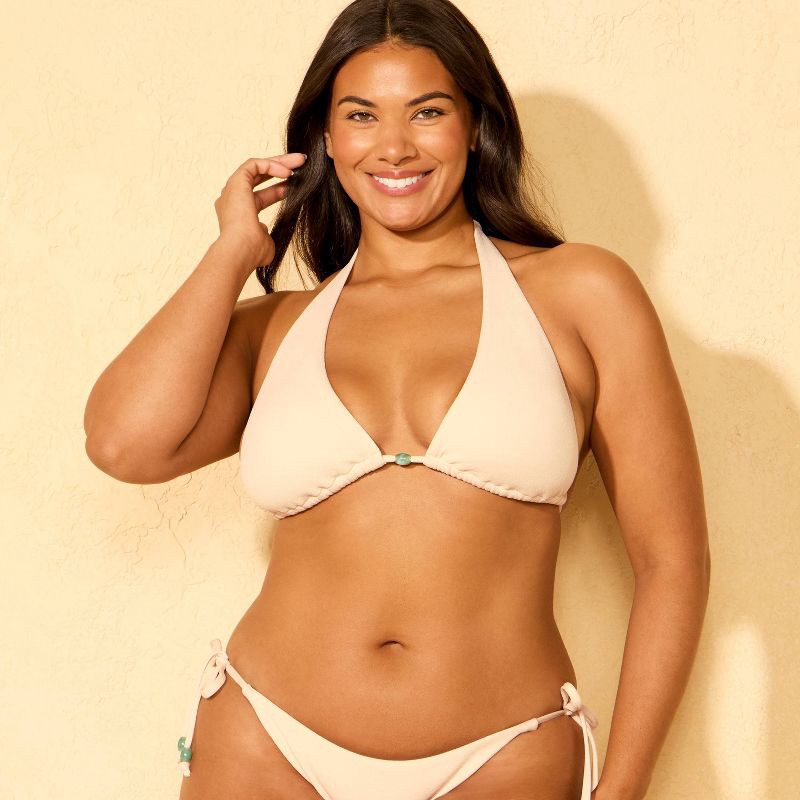 Women's Crepe Multiwear Beaded Triangle Bikini Top - Shade & Shore™ Cream XS