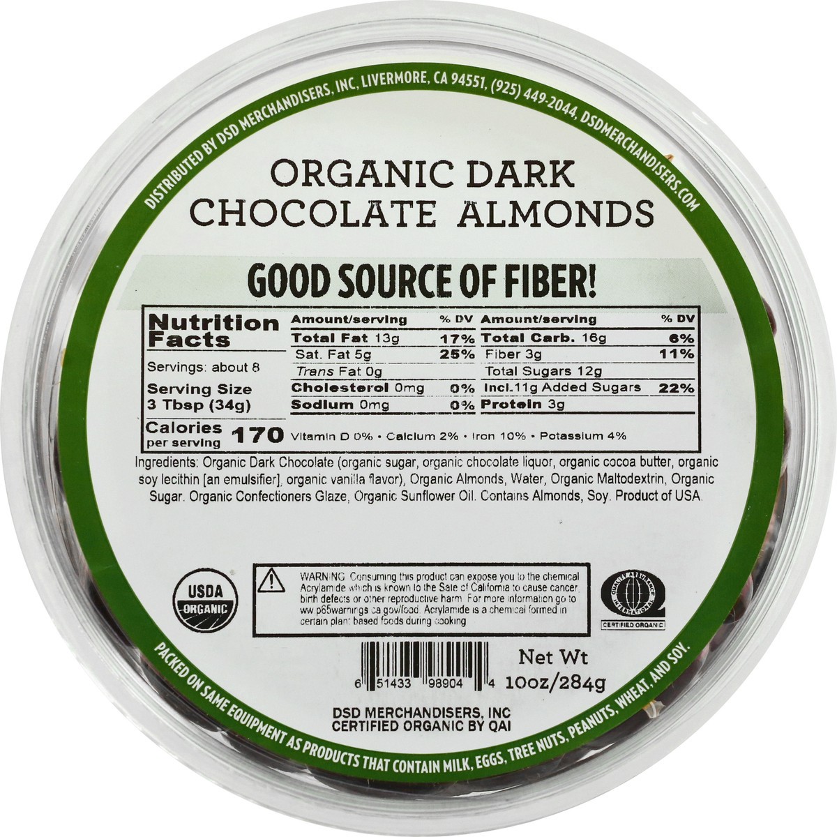 DSD Merchandisers Organic Dark Chocolate Almonds 10 oz