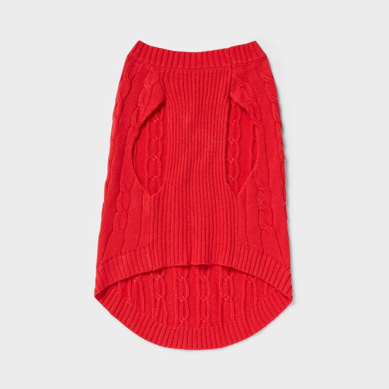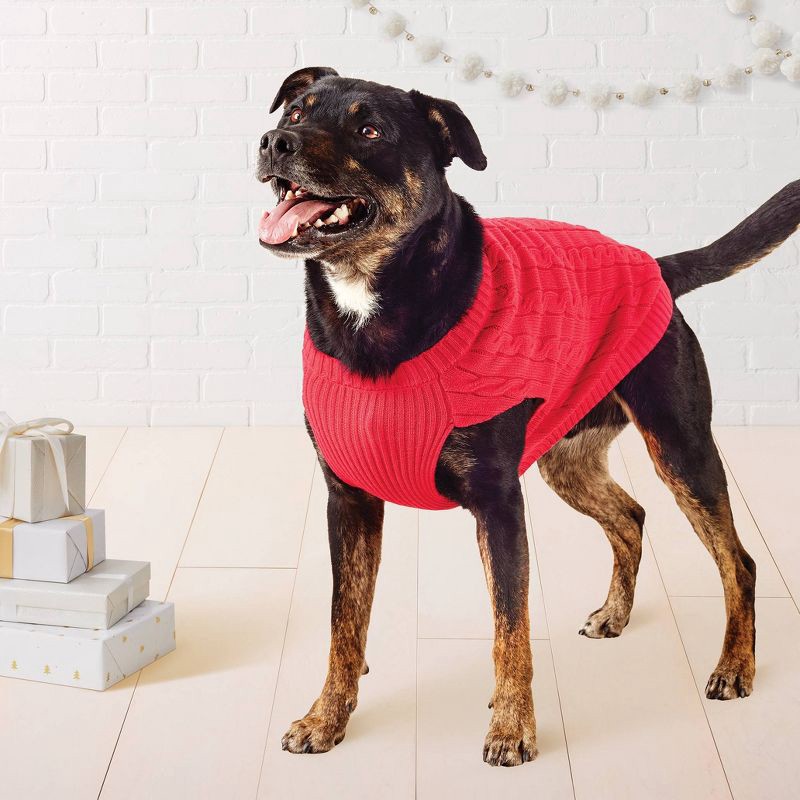 This Dog and Cat Knit Sweater from Wondershop™ will help your pet stay cozy as the temperatures drop. Made from acrylic in a solid color, this dog and cat sweater will keep your furry friend looking a…