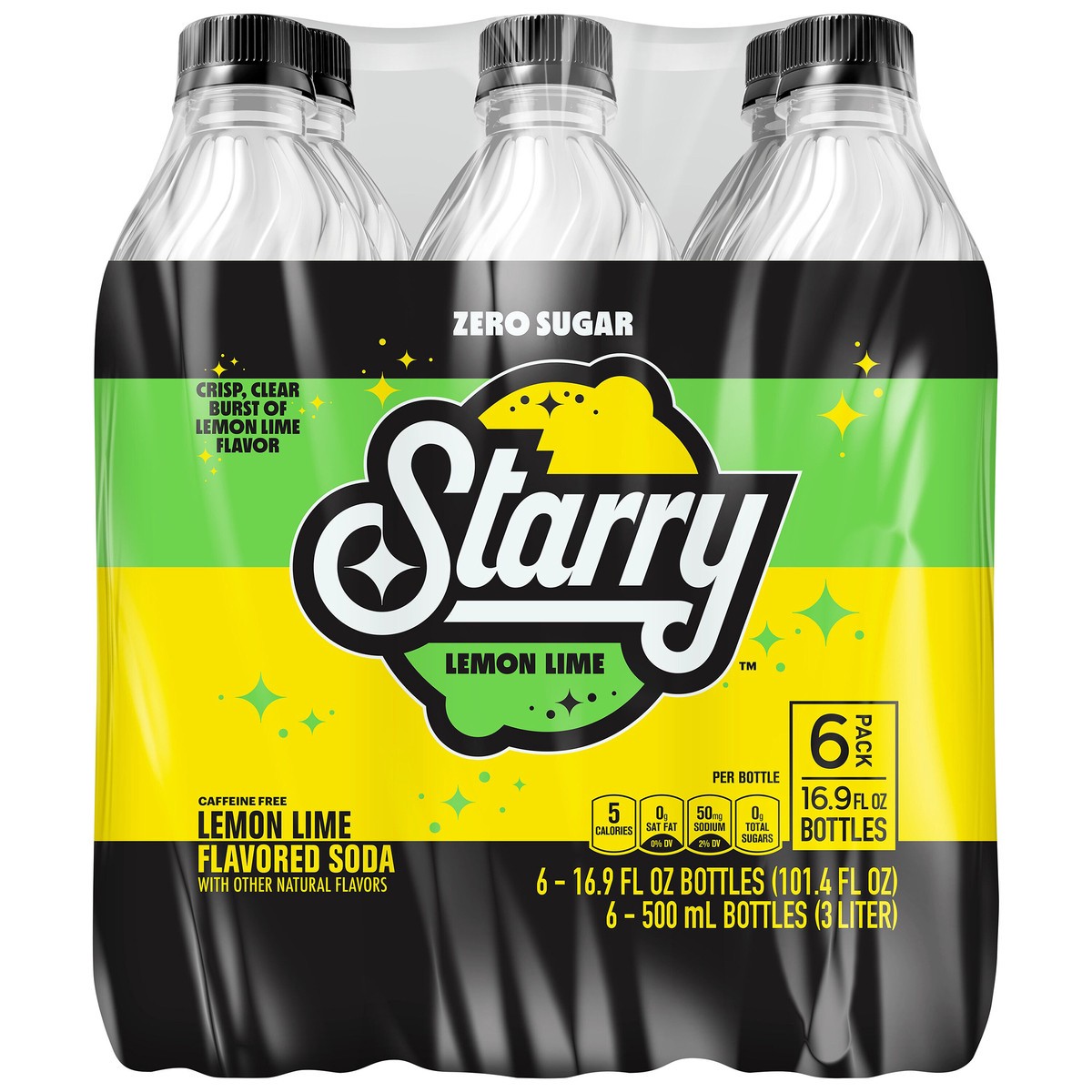 Starry Soda, Caffeine Free, Zero Sugar, Lemon Lime, 6 Pack