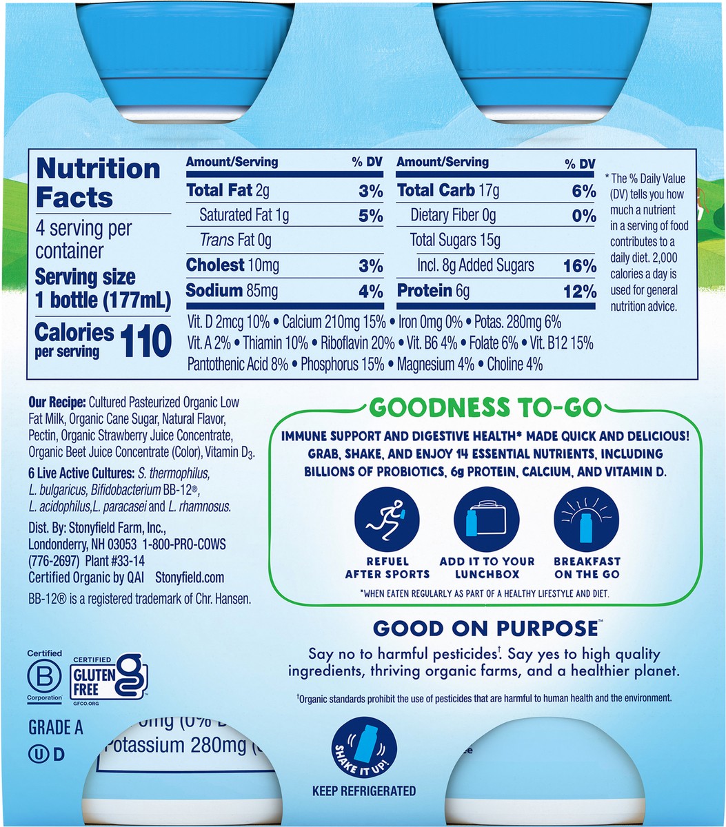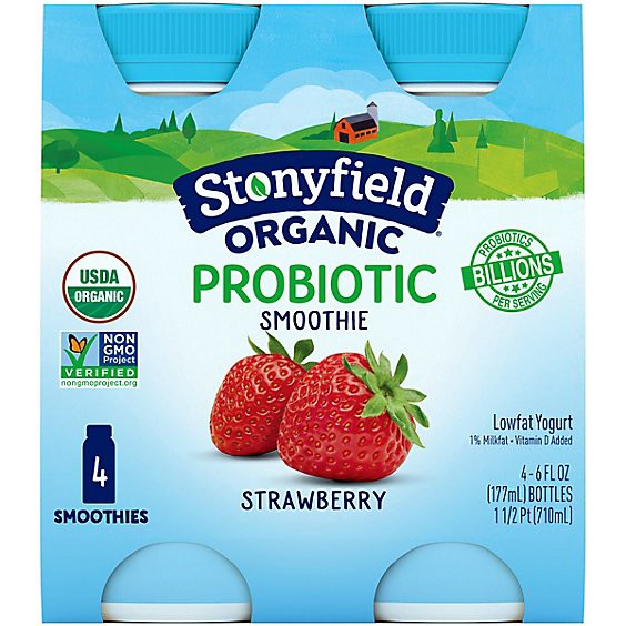 Stonyfield Organic Probiotic Strawberry Lowfat Yogurt Smoothie - 4-6 Fl. Oz.