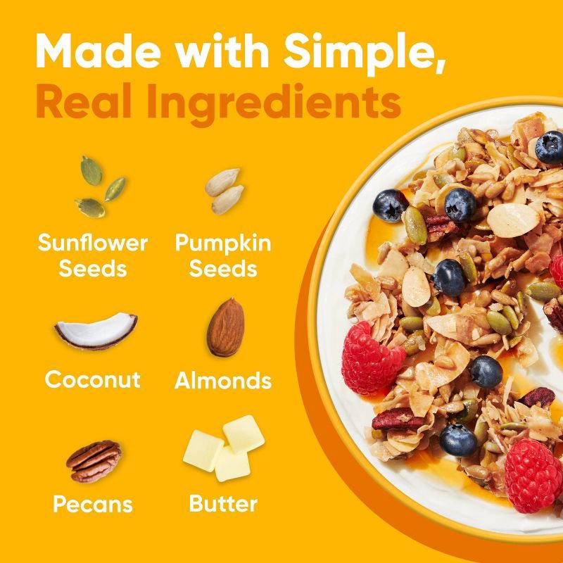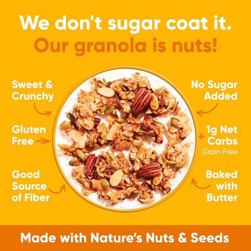 Sunflower Seeds, Pumpkin Seeds, Coconut, Erythritol, Almonds, Pecans, Butter (Pasteurized Cream, Natural Flavor), Natural Flavors, Salt, Monkfruit Extract.