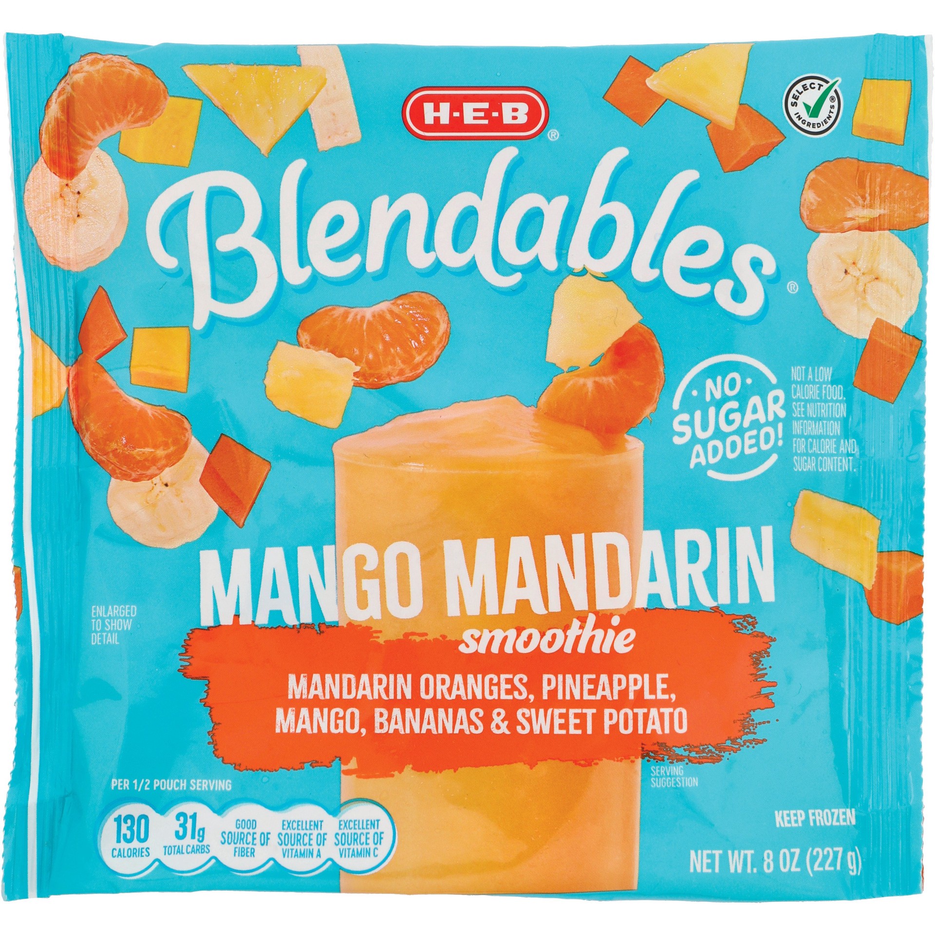 Offering enough to make two 8-oz smoothies, H-E-B Blendables Mango Mandarin just needs the addition of water, milk, juice or yogurt. The terrific taste of mango and orange is the perfect pair, plus th…
