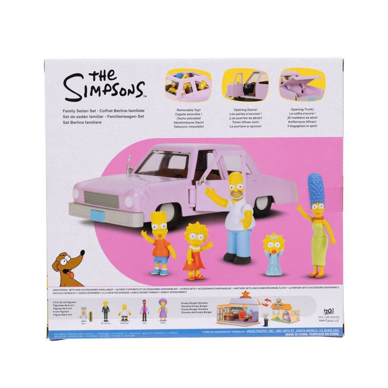 - OFFICIALLY LICENSED: The Simpsons Sedan with Family set includes Homer's sedan with all five family members in 2.5-inch scale. Each figure features a highly detailed design, capturing their animated look and feel.