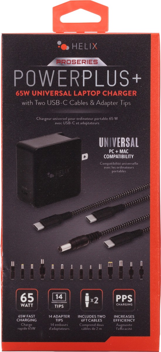 Say goodbye to the hassle of carrying multiple chargers for different devices and hello to versatility and efficiency. The Helix 65W Universal Laptop charger includes 14 adapter tips to fit any laptop…