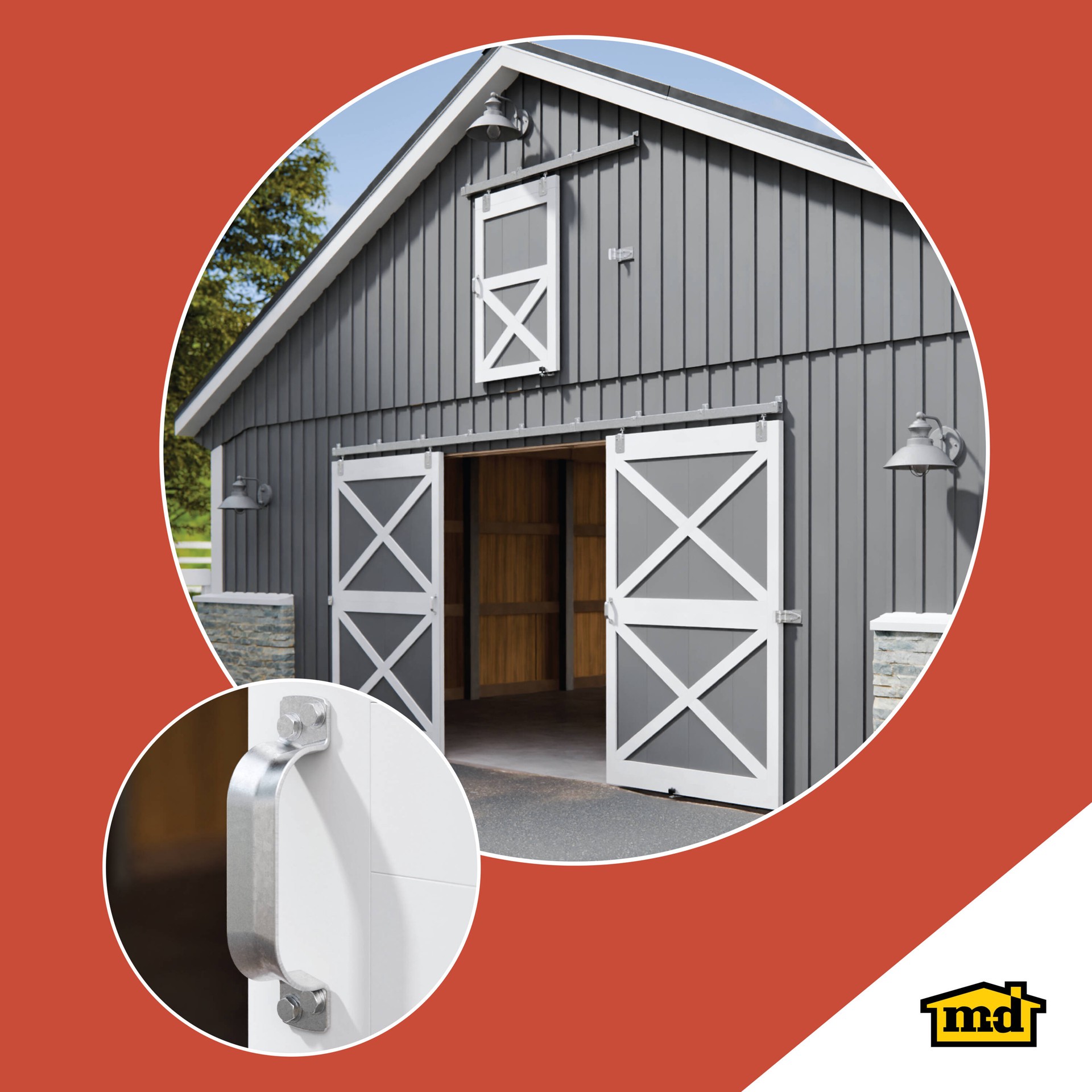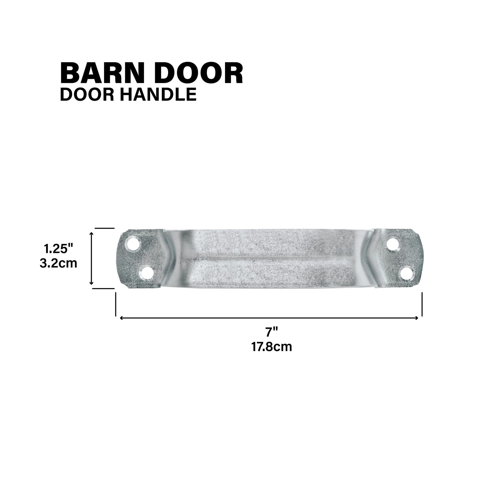 Heavy-duty door handle. Treated galvanized steel. 7" in length. Galvanized steel. Mill. Galvanized to protect from harsh weather environments. Rounded handle for comfortable grip when opening heavy do…