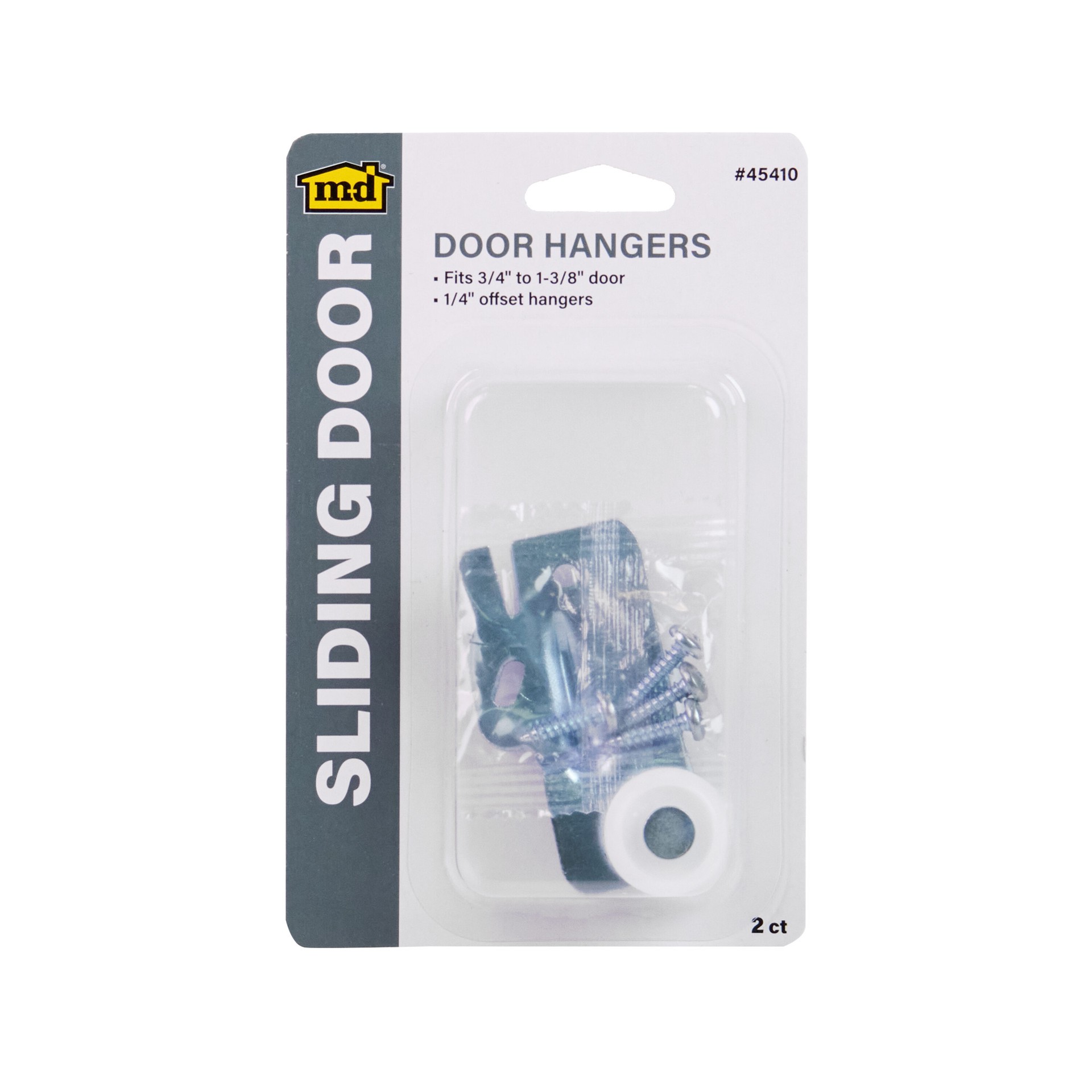 1/4" offset sliding door hangers for bypass sliding closet doors. Fits on door 3/4" - 1-3/8" thick. 3/4" diameter roller. Steel. Nylon wheels. Holds 30 lb doors. 1/4" offset hanger.