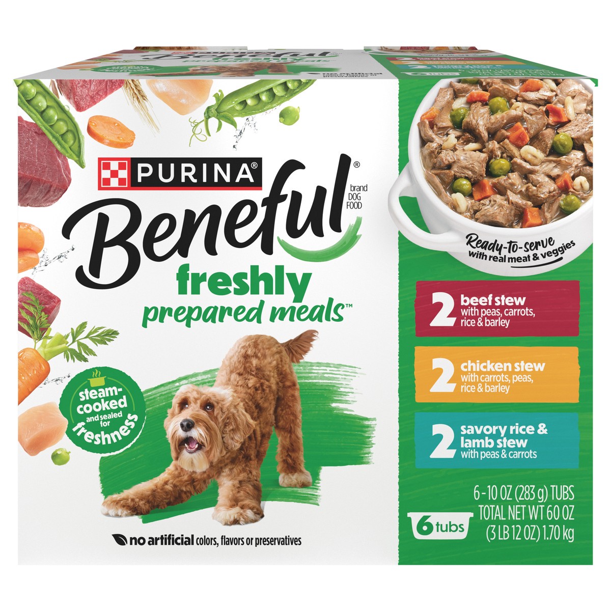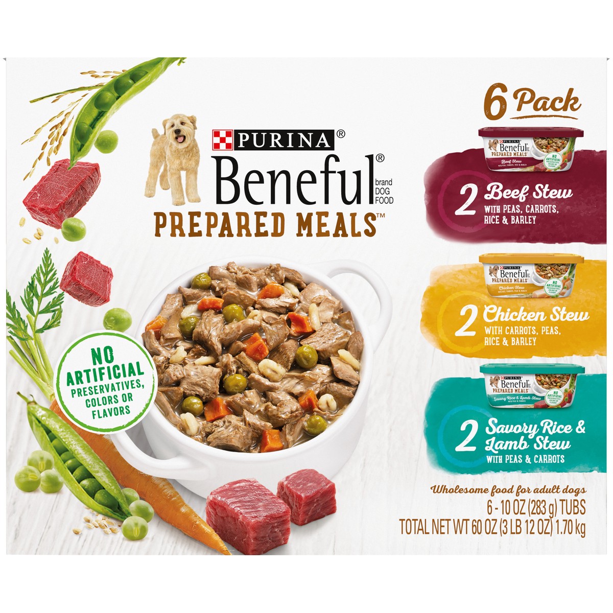 Purina Beneful High-quality protein Gravy Wet Dog Food Variety Pack Freshly Prepared Meals Stew - (6) 10 oz. Tubs