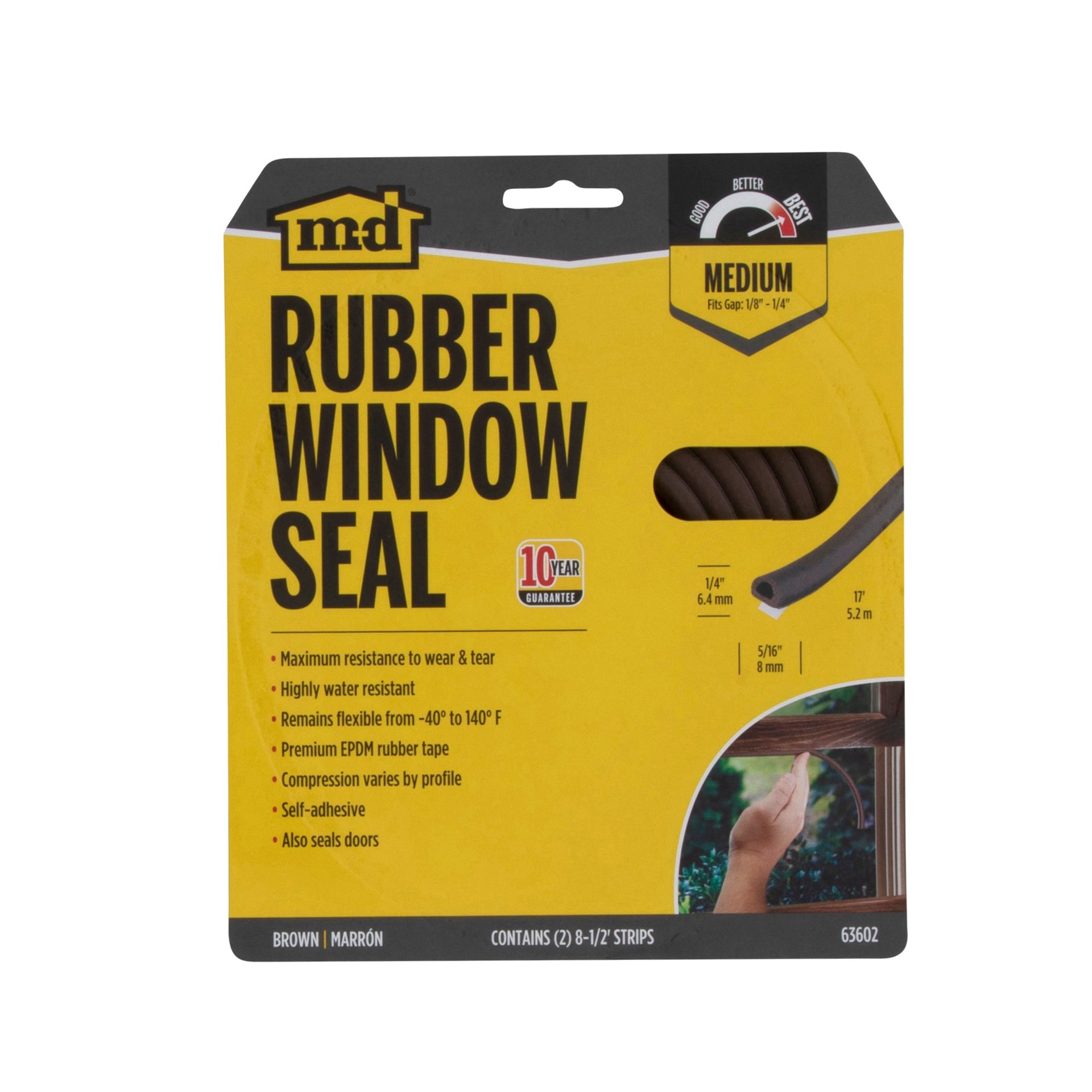 Made of premium EPDM rubber tape. Seals gaps at the bottom of your window to protect against drafts, moisture, dust and insects. Highly water resistant. Brown color. Remains flexible from -40° F to 14…
