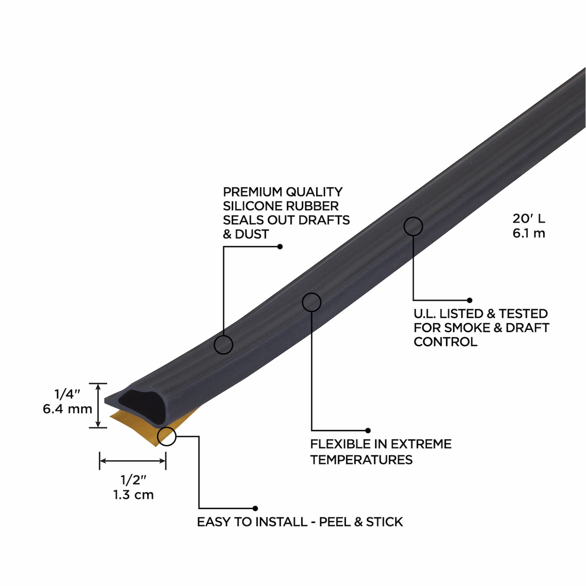 Made of highly durable silicone rubber. Seals to protect against drafts, moisture, dust and insects. Unaffected by mildew, fungus or UV light. Black color. Remains flexible in extreme temperatures. 20…