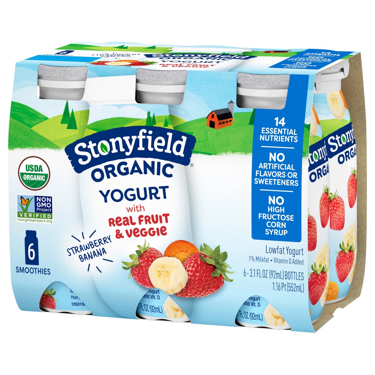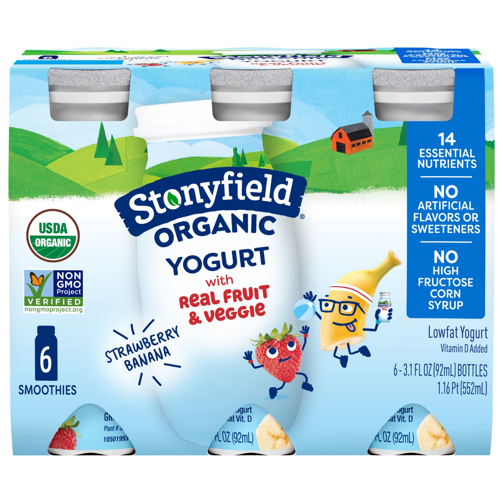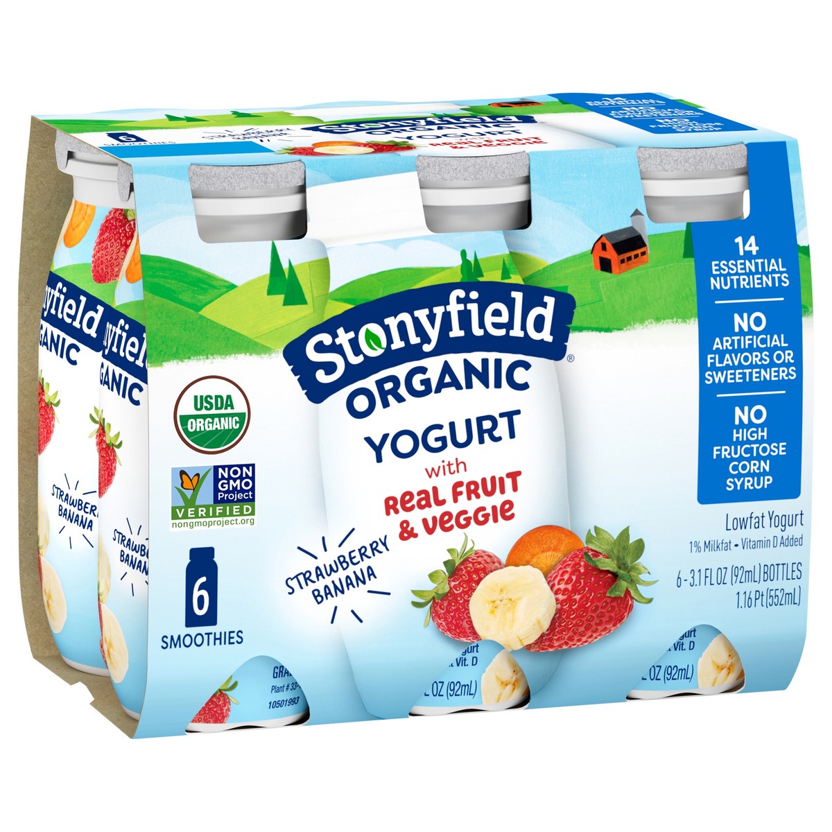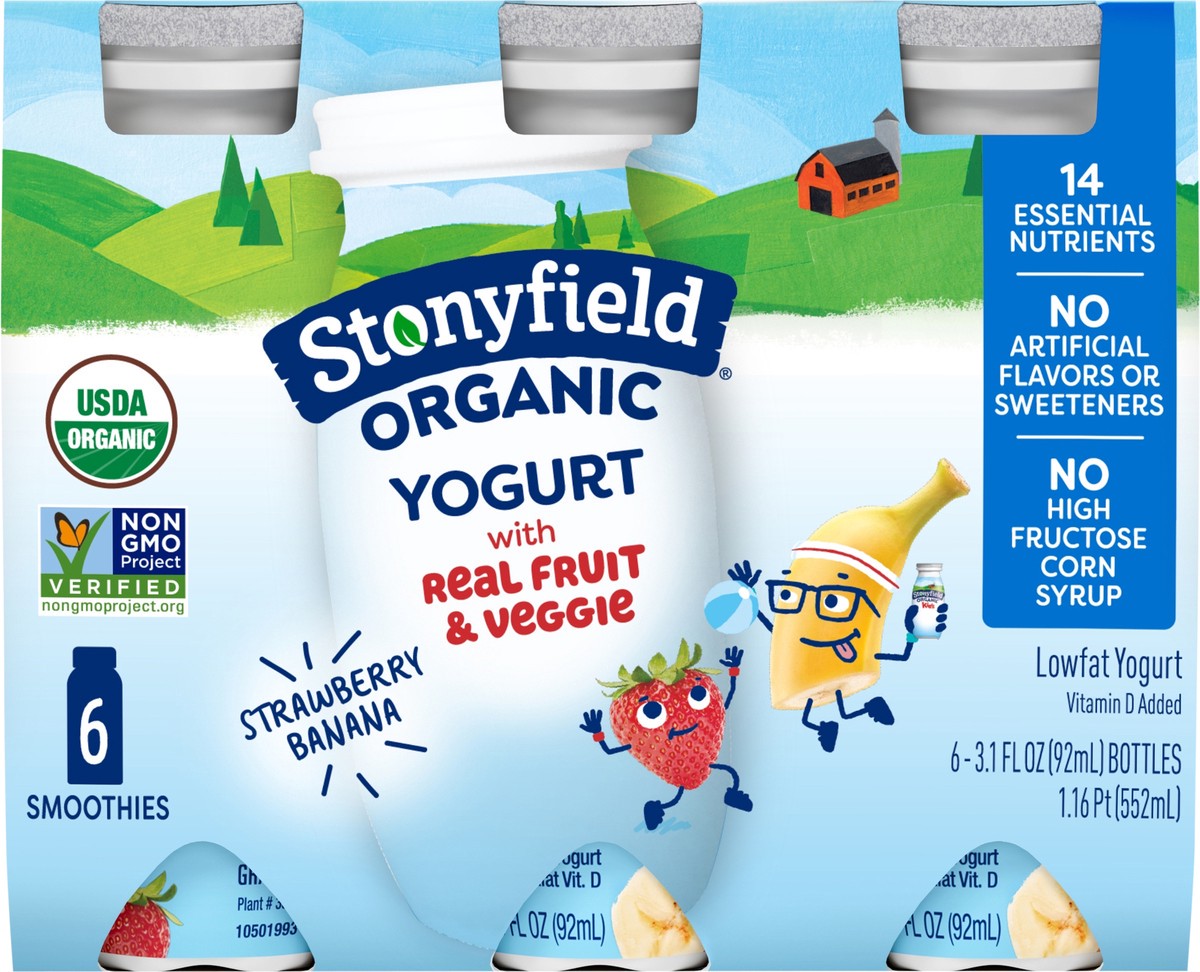Stonyfield Organic Strawberry Banana Lowfat Yogurt Smoothie - 6-3.1 Oz