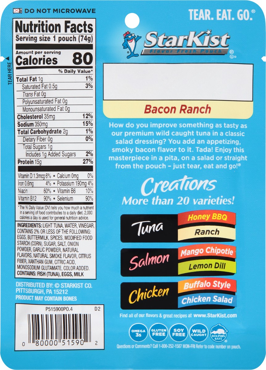 Starkist Tuna Creations Tuna Chunk Light Bacon Ranch - 2.6 Oz