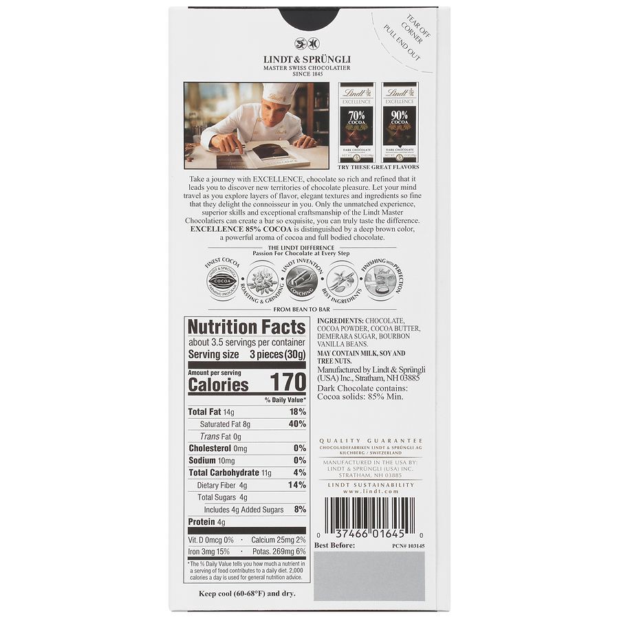 Lindt Excellence 85% Cocoa Dark Chocolate 3.5 oz