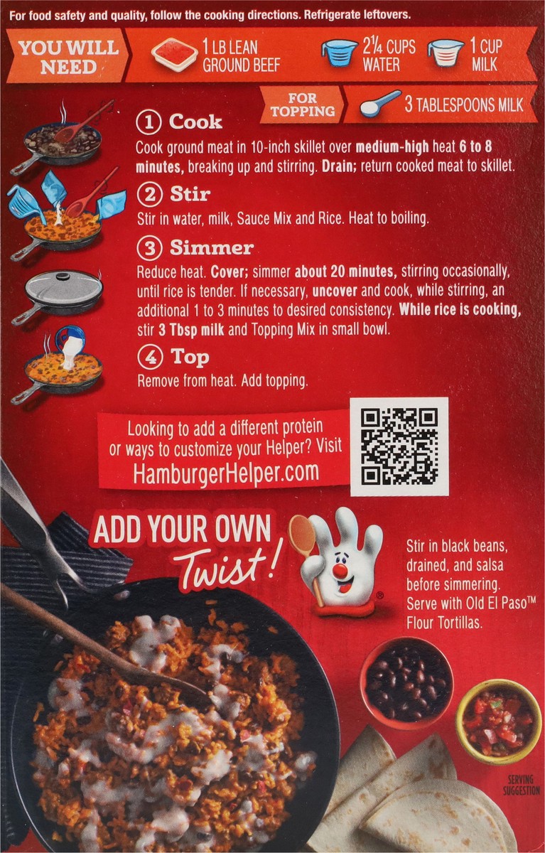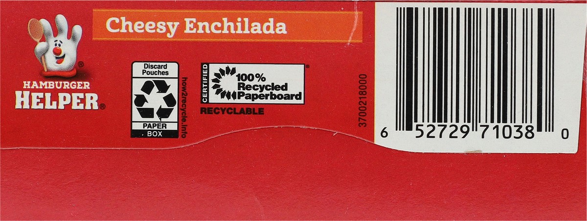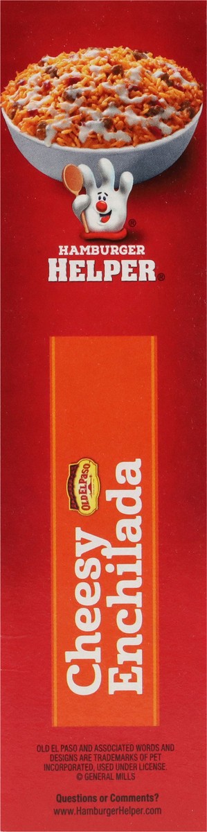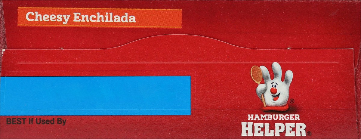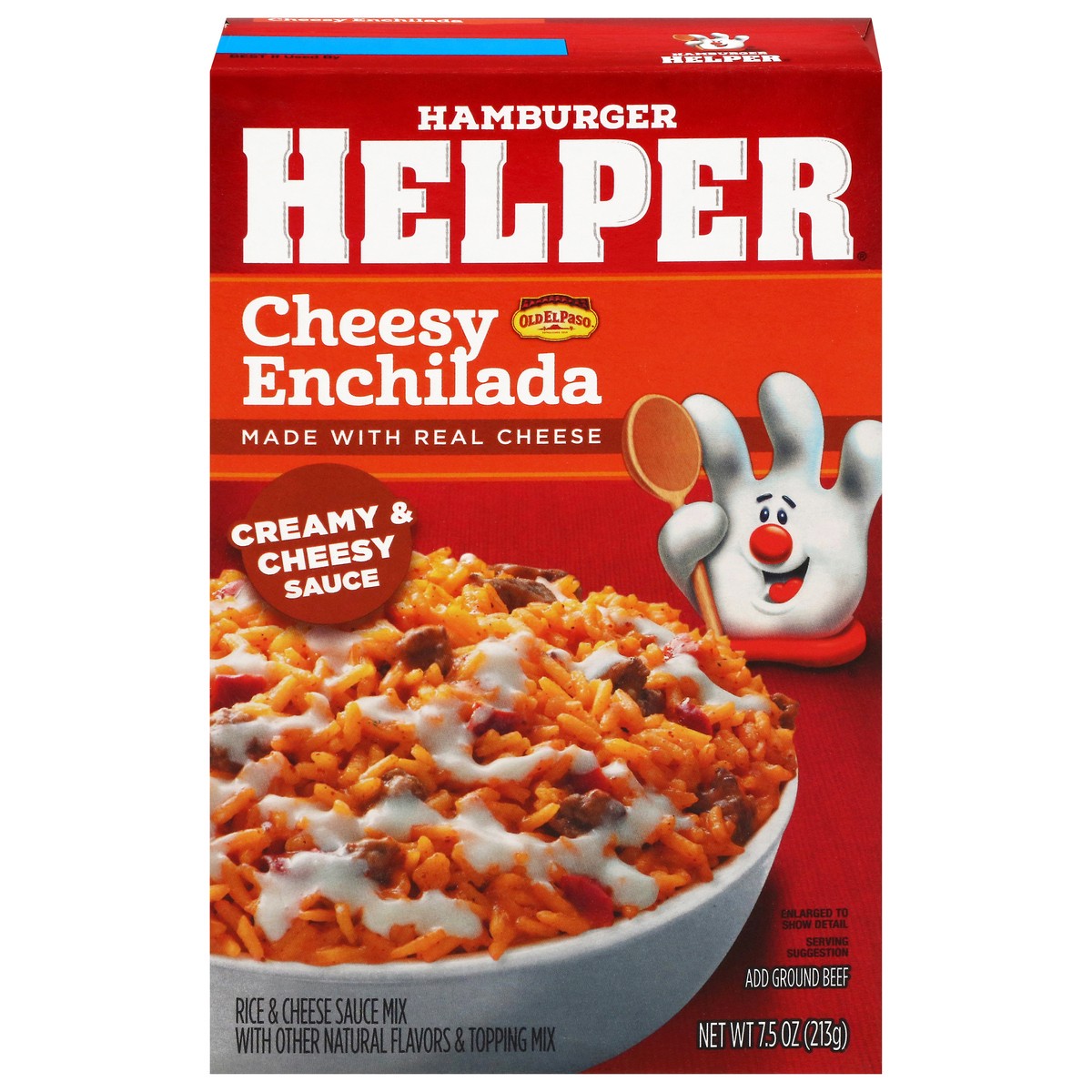 Hamburger Helper Cheesy Enchilada 7.5 oz Box. America's favorite Hamburger Helper is made with 100% REAL cheese and Mexican-style spices for the zesty taste you love most. Our products are made with N…