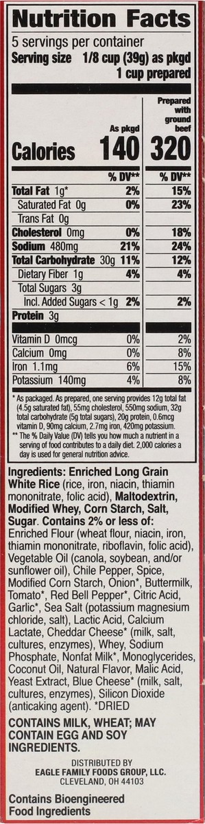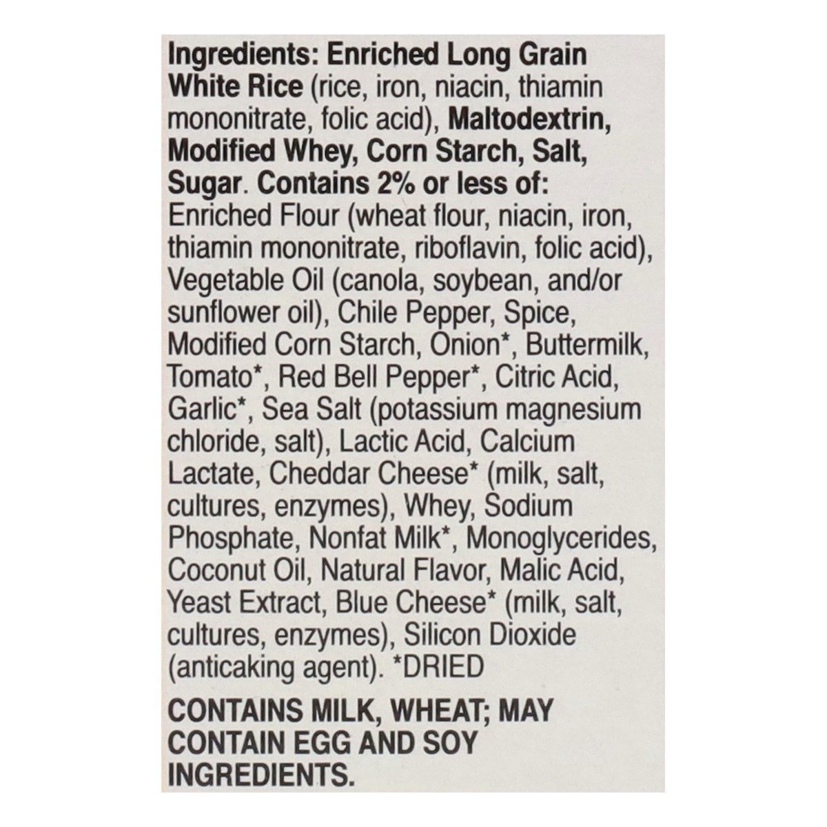 Enriched Long Grain White Rice (Rice, Iron, Niacin, Thiamin Mononitrate, Folic Acid), Maltodextrin, Modified Whey, Corn Starch, Salt, Sugar, Contains 2% or Less of: Enriched Flour (Wheat Flour, Niacin…