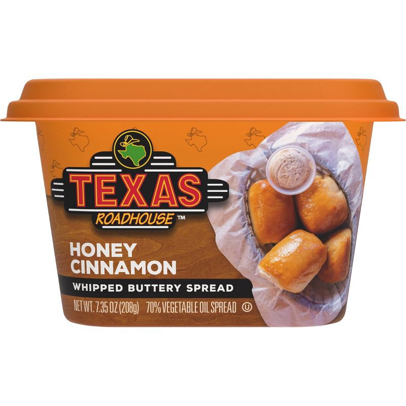 You can now have the iconic Texas Roadhouse taste, in the comfort of your own home with Texas Roadhouse Honey Cinnamon Whipped Buttery Spread, 7.35 oz tub (Refrigerated). This buttery spread is inspir…