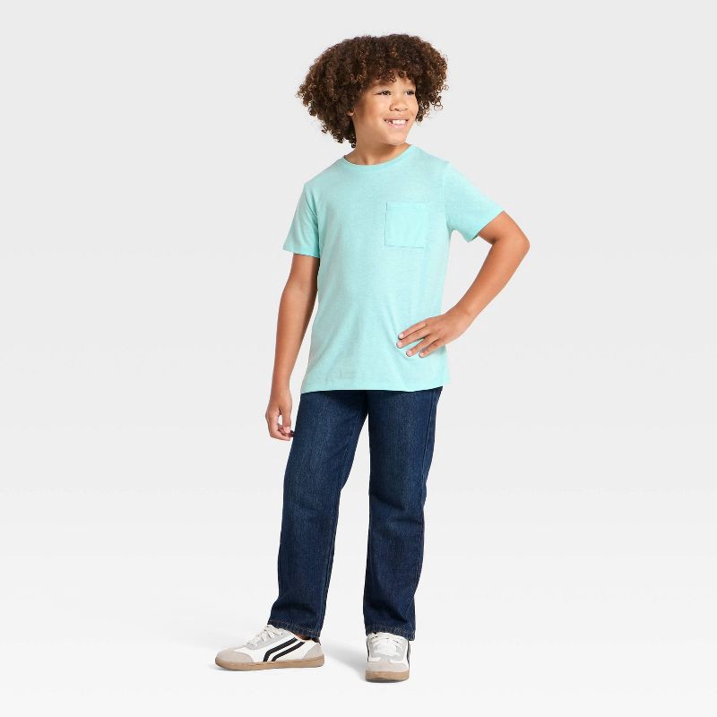 Boys' Short Sleeve Pocket T-Shirt - Cat & Jack™ Light Aqua Blue L