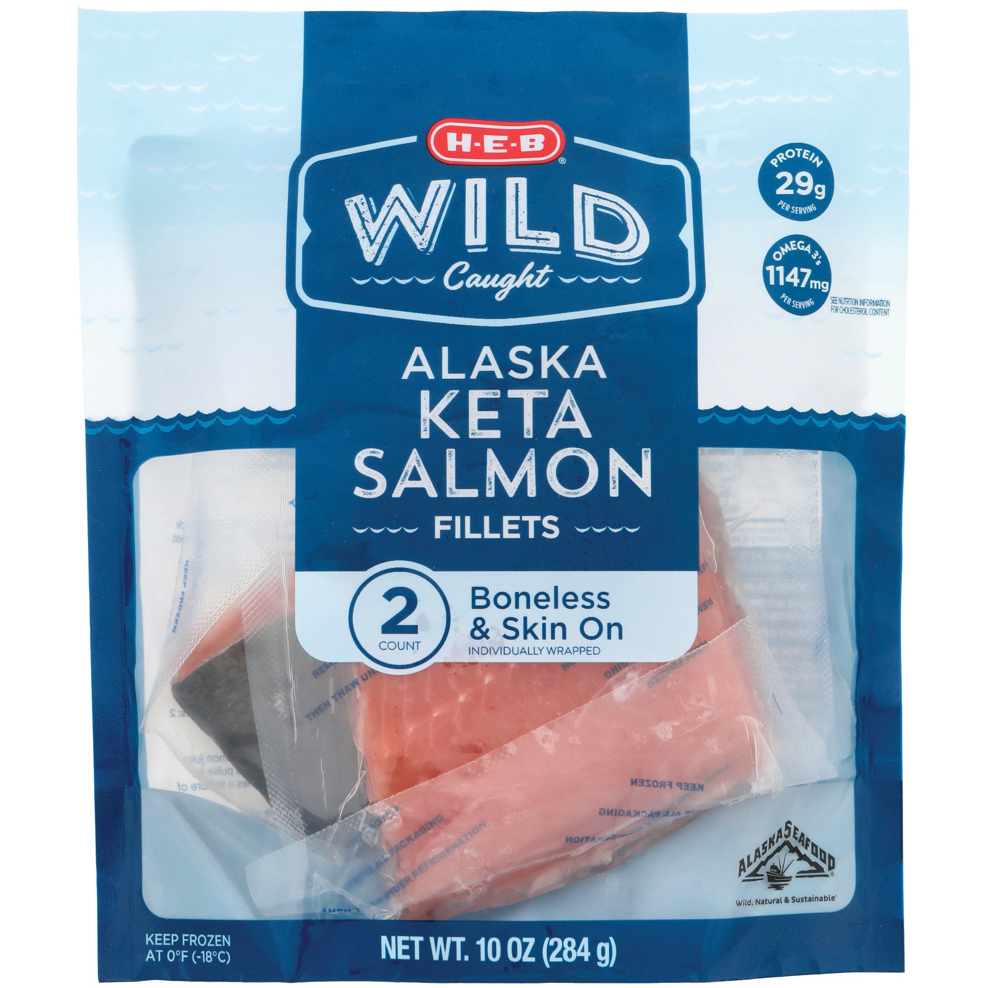 Enjoy boneless and skin-on H-E-B Frozen Wild Caught Alaska Keta Salmon Fillets packed with 29g of protein and 1147mg of Omega 3's per serving (see nutrition information for cholesterol content).