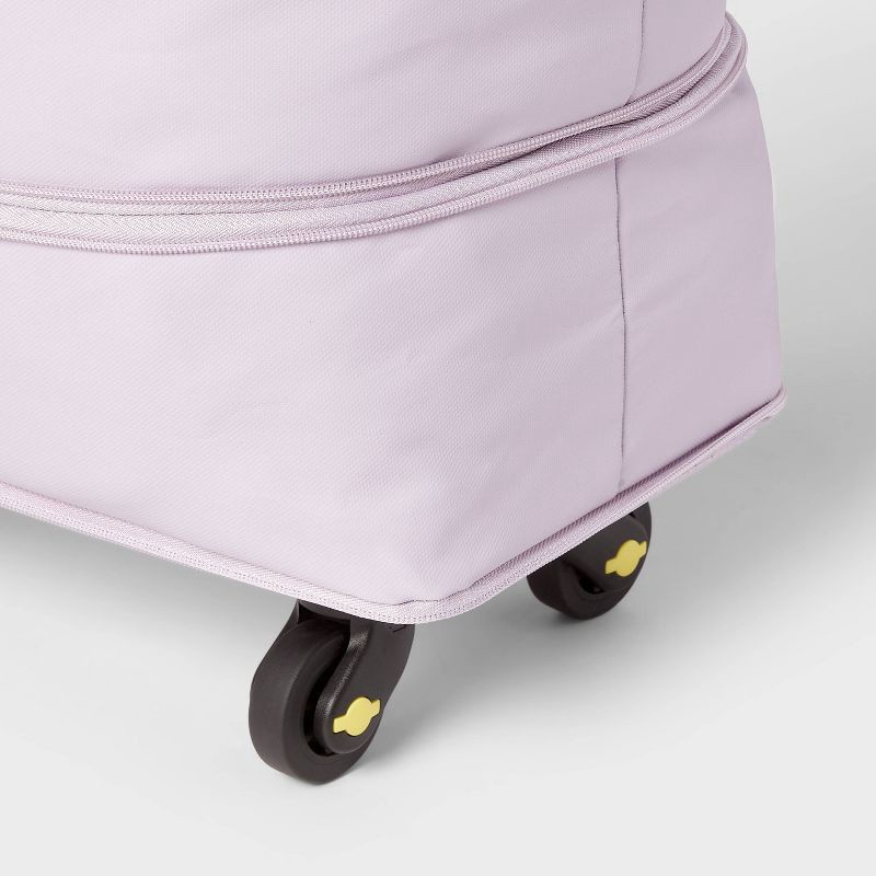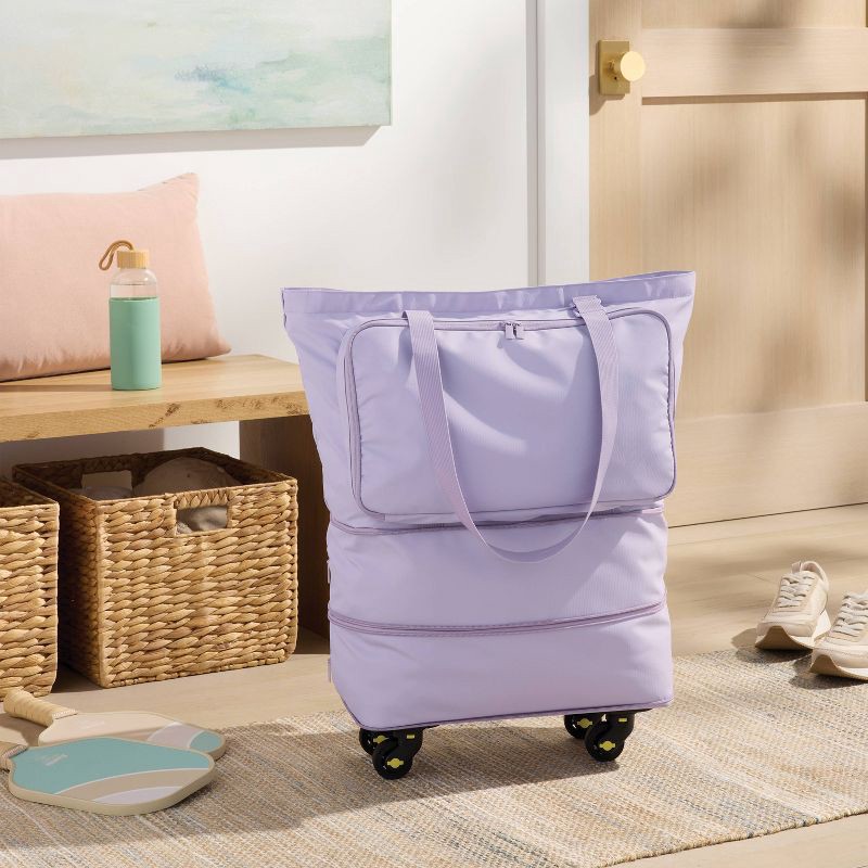 Pack your essentials in style with this Collapsible Rolling Tote from Brightroom™. Made of recycled polyester, this lavender tote features a spacious zippered main compartment with an interior pocket …
