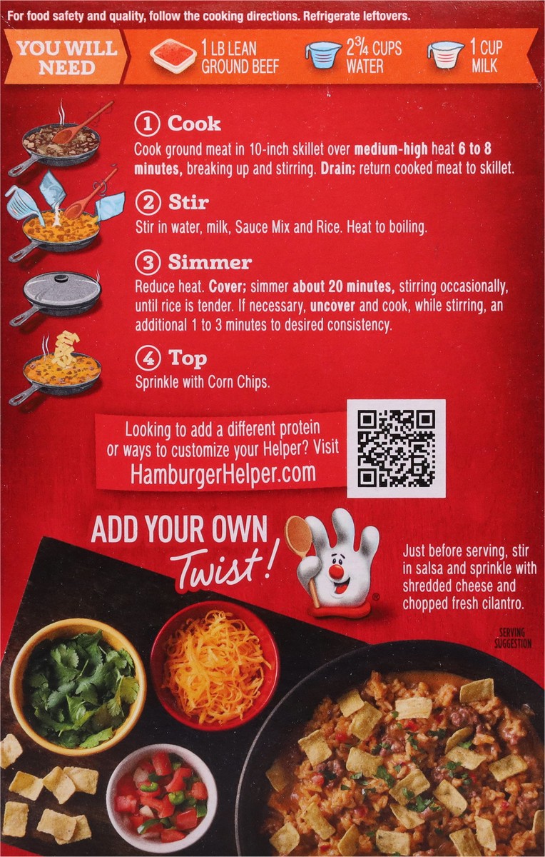 America's favorite Hamburger Helper is made with 100% REAL cheese and Mexican-style spices for the zesty taste you love most. Our products are made with NO artificial flavors or colors from artificial…