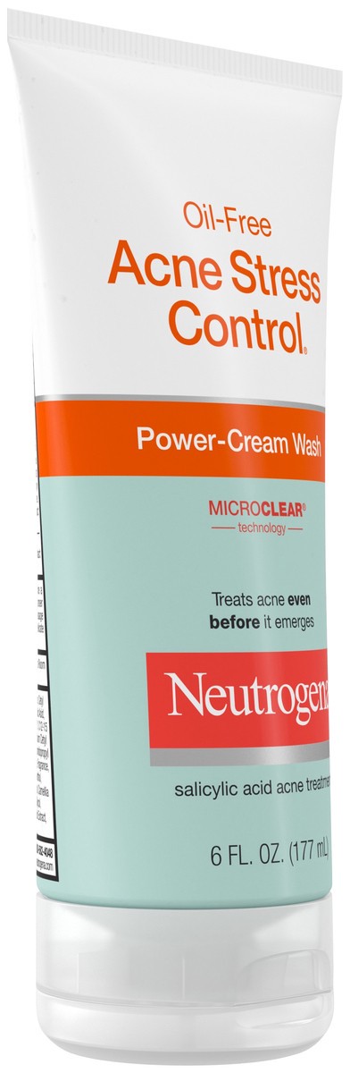 - Tube of Oil-Free Acne Stress Control Power-Cream Face Wash with salicylic acid for acne-prone skinDaily face wash gently cleanses