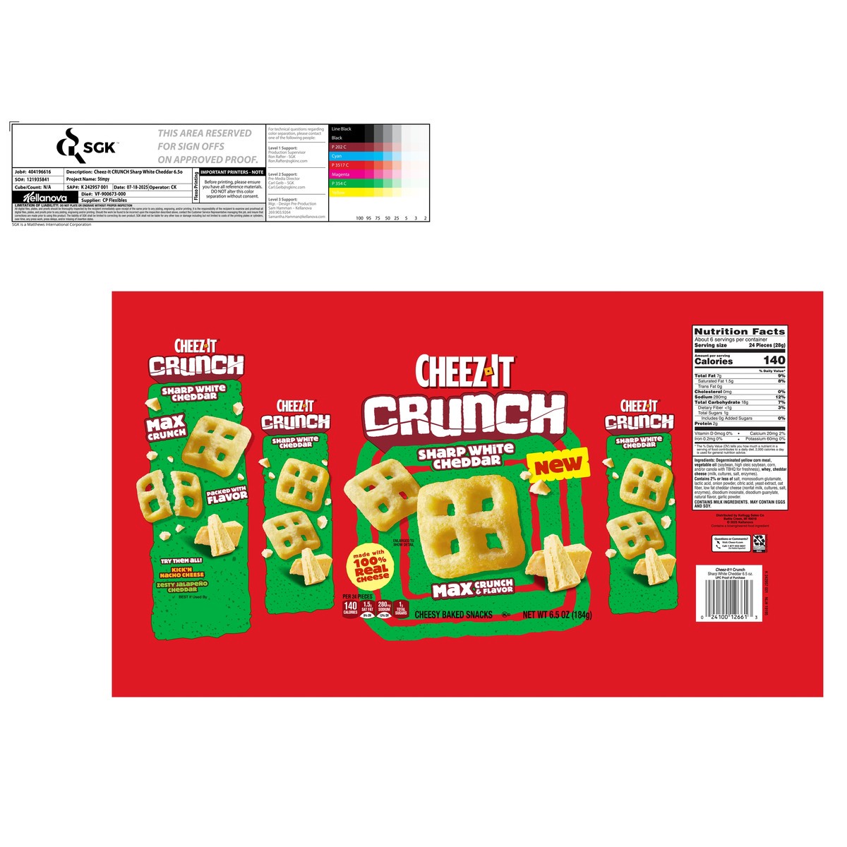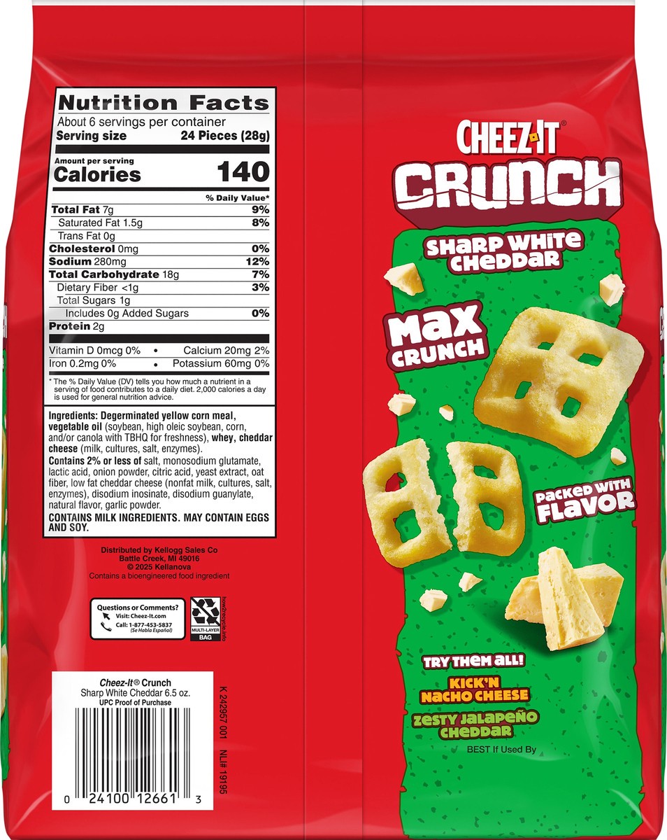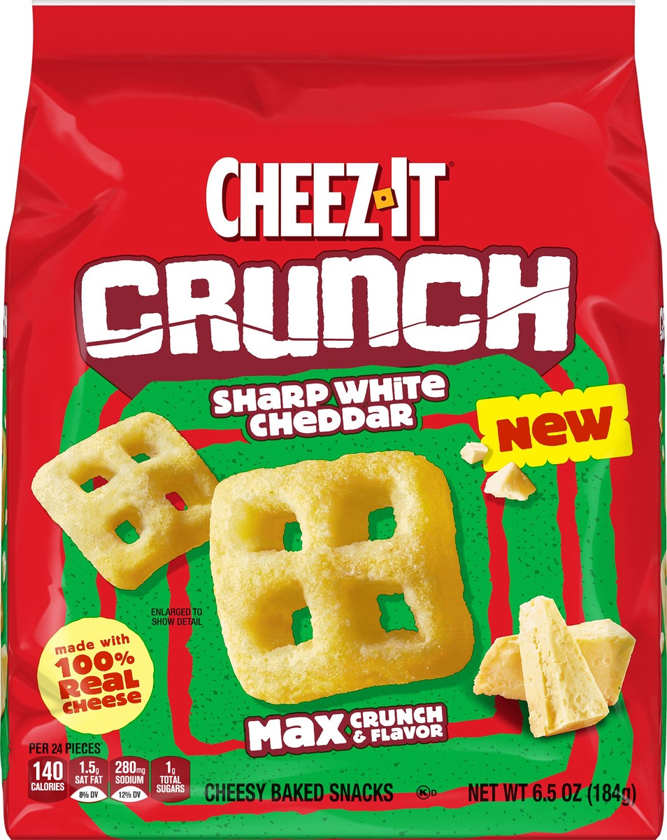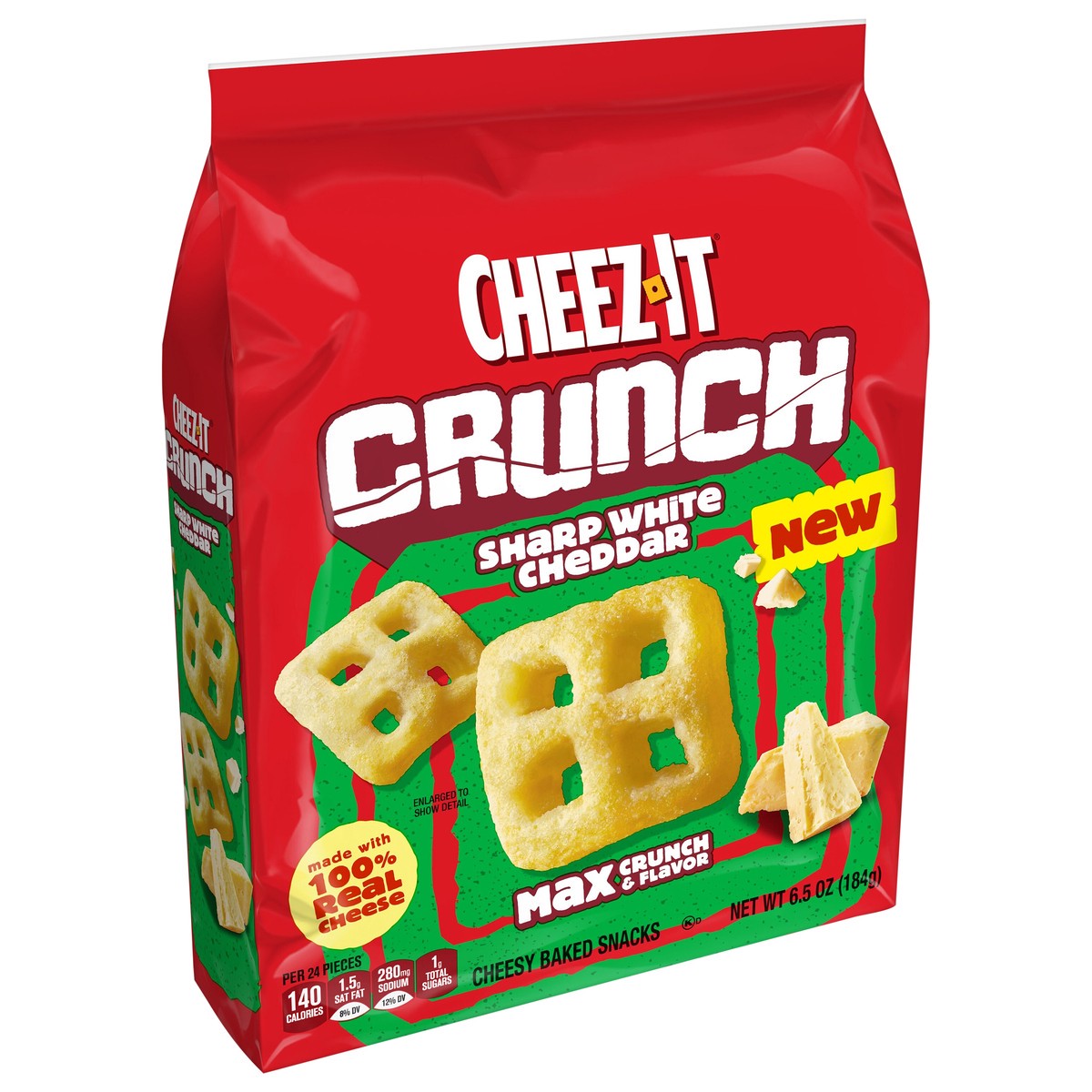 Make snack time more fun with the bold, spicy flavor and 3D crunch of Cheez-It Crunch Sharp White Cheddar! These are the real deal, made with 100% real cheese in every bite. A baked snack, Cheez-It Cr…