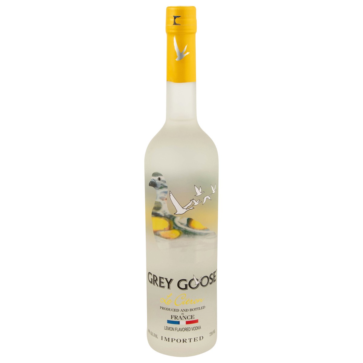 - GREY GOOSE Le Citron Flavored VodkaHigh quality hard liquor that delivers a fresh and warm finishBright lemon flavored GREY GOOSE vodka with a balanced aroma and a clean, subtle tasteContains 40% alcohol by volume for the perfect cocktailMade with the finest lemons from the Menton region of France