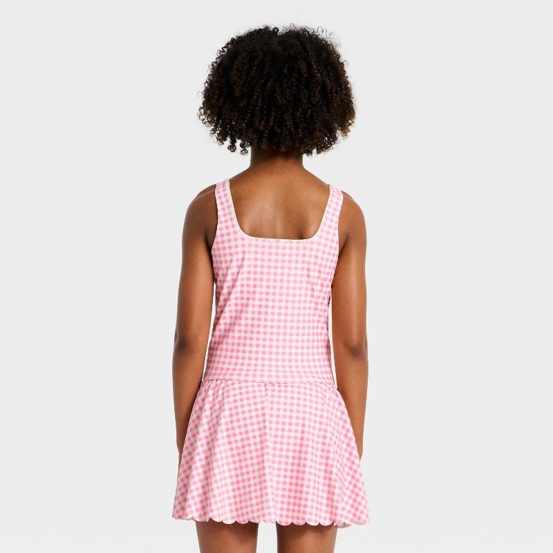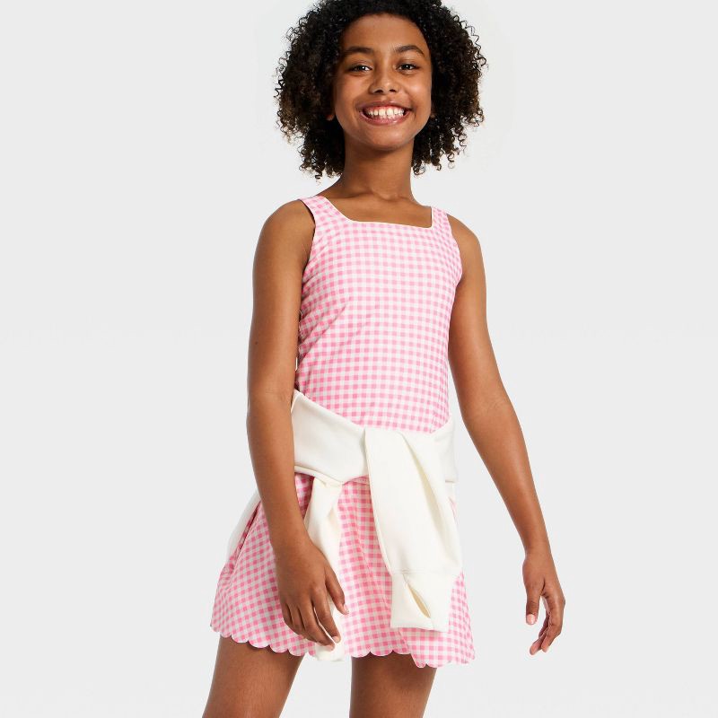 Girls' Active Scallop Crop Tank Top - All In Motion™ Pink Gingham XS