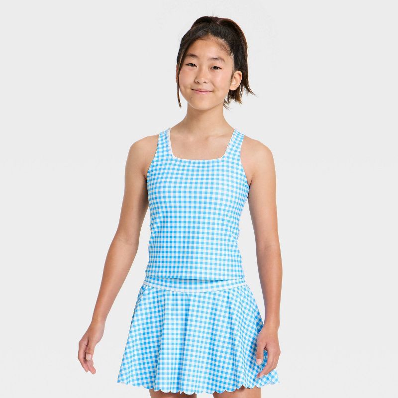 Why we're ALL IN:Crop tank top designed for your kids' active days. Made from recycled polyester-spandex blend fabric for comfortable wear that moves and stretches with them. Featuring a scalloped tri…