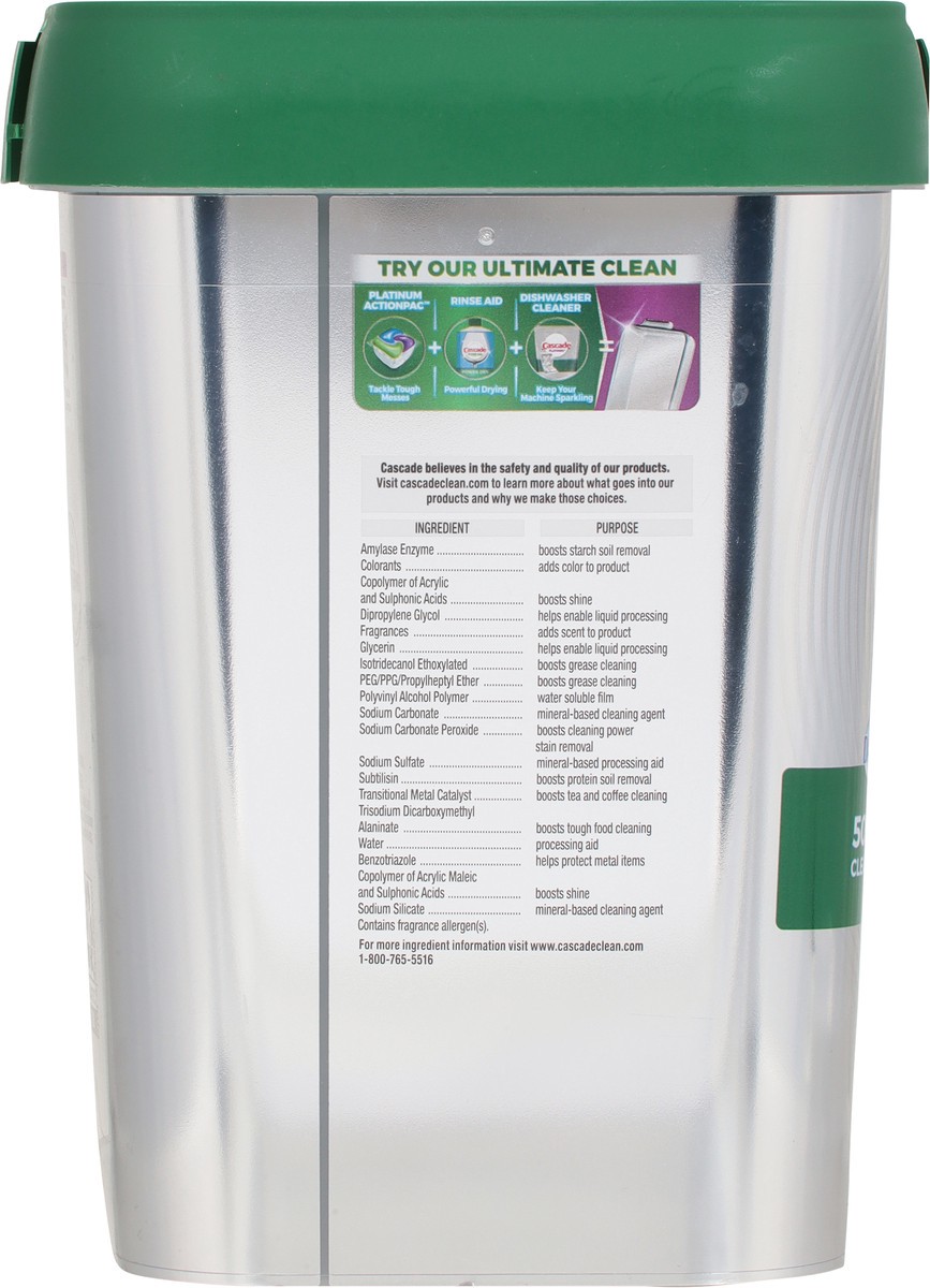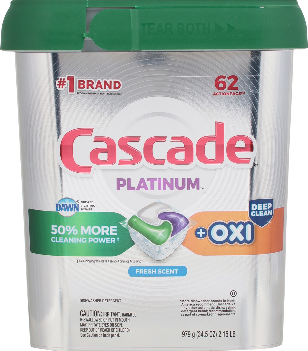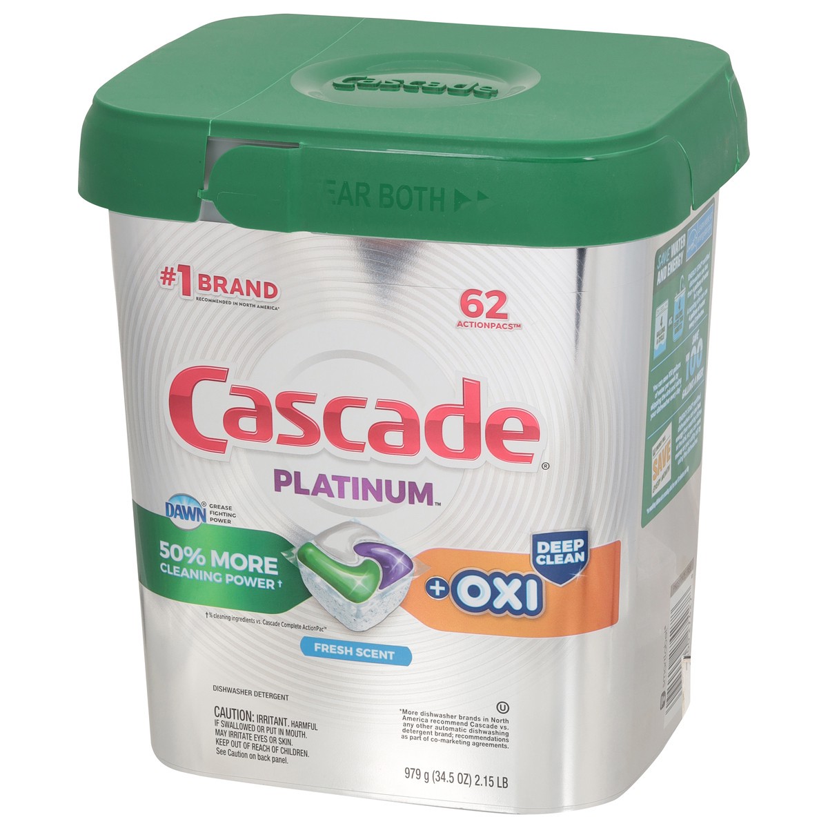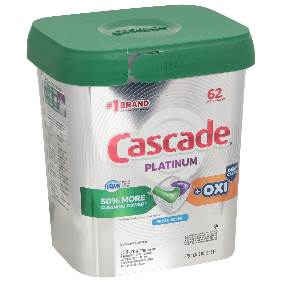 Cascade Platinum + Oxi Dishwasher Pods, Dish Detergent ActionPacs, Fresh, 62 Count