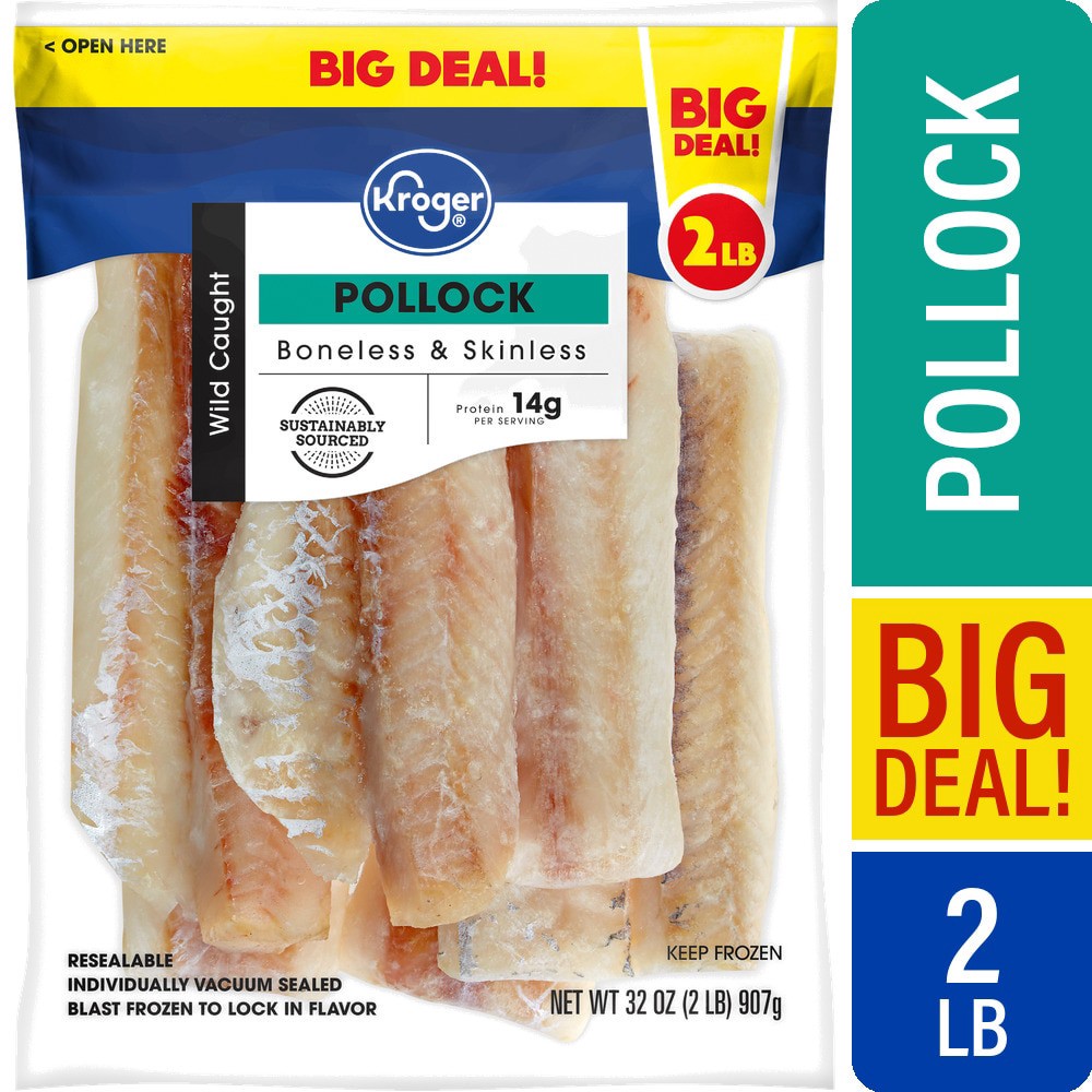 Kroger Wild Caught Boneless Skinless Frozen Pollock