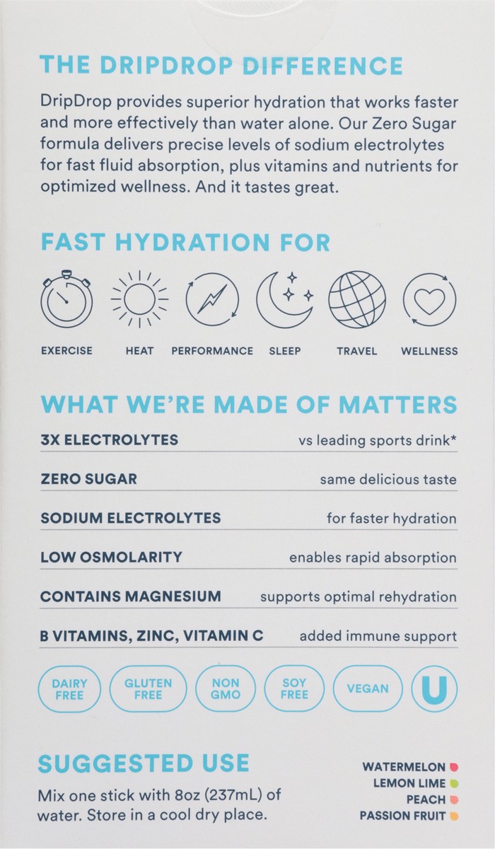DripDrop Zero Sugar Fast Hydration Electrolyte Drink Mix Variety Pack - 8 - 0.16 oz Sticks
