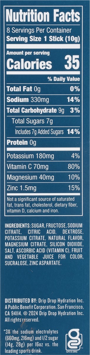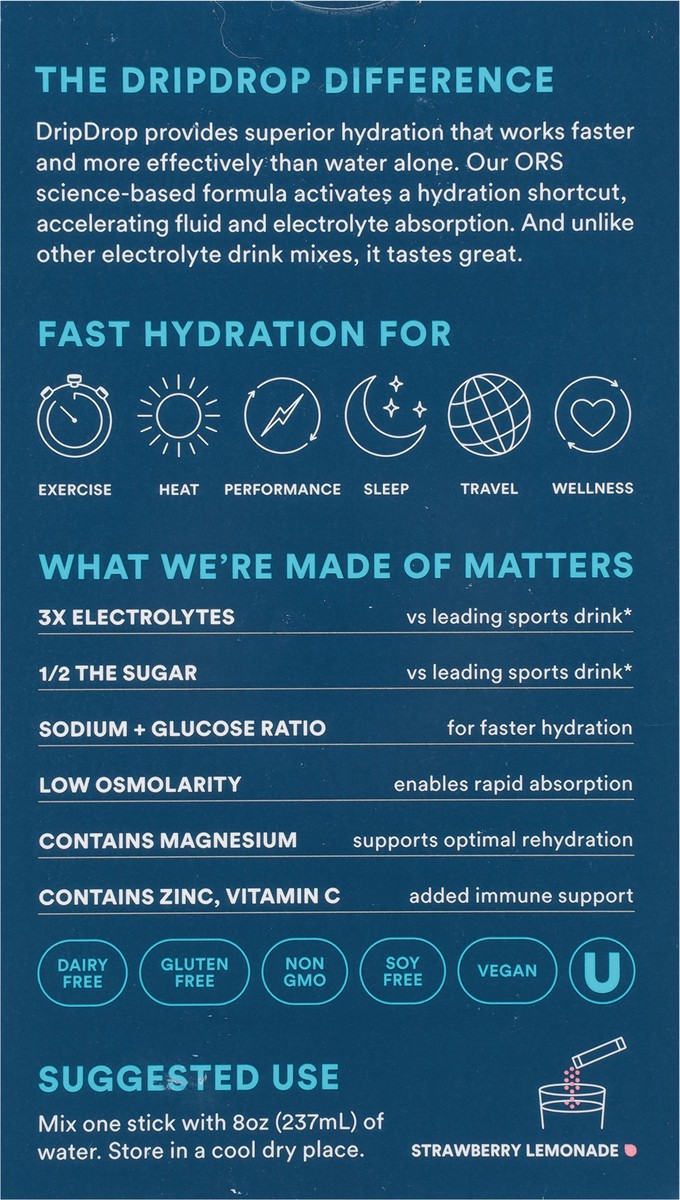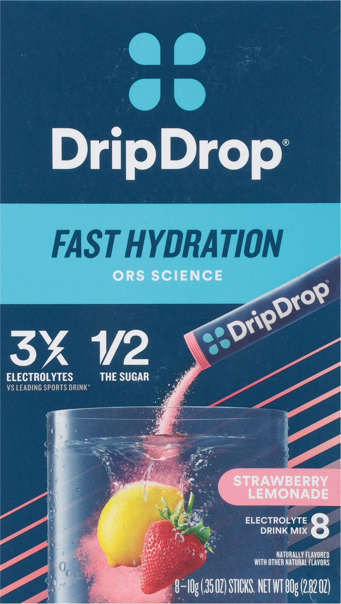 DripDrop Strawberry Lemonade Electrolyte Drink Mix - 8 x 0.35 oz Sticks