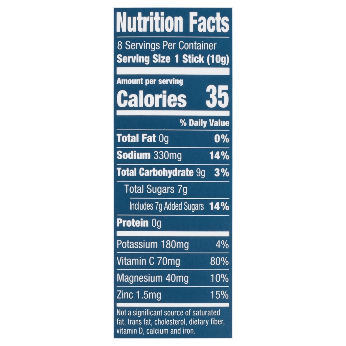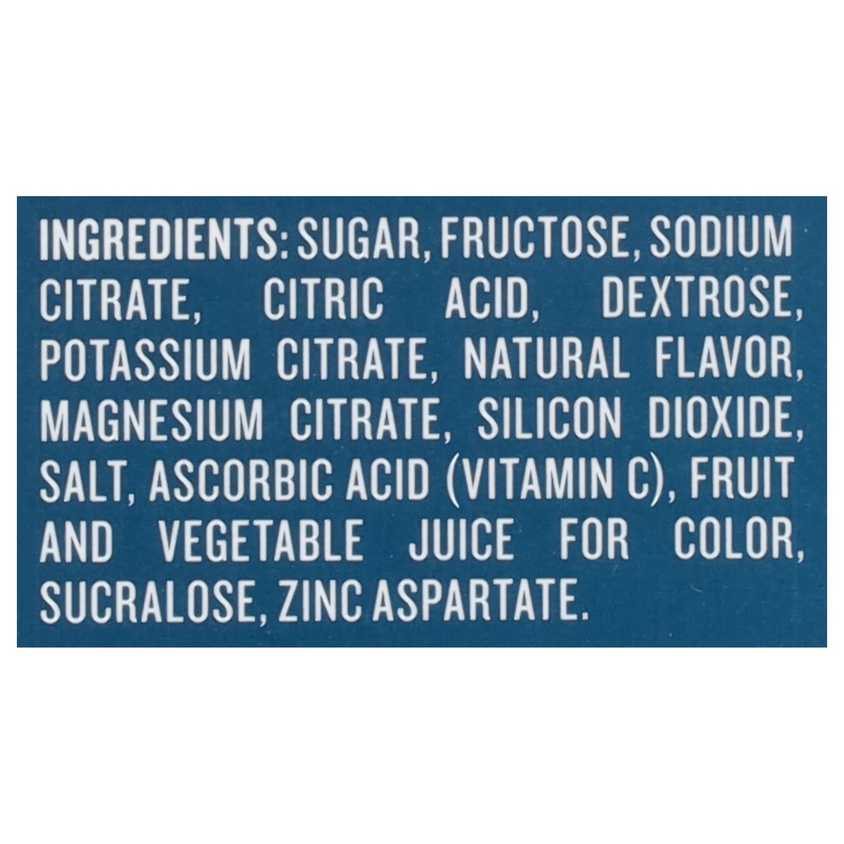 Sugar, Fructose, Sodium Citrate, Citric Acid, Dextrose, Potassium Citrate, Natural Flavor, Magnesium Citrate, Silicon Dioxide, Salt, Ascorbic Acid (Vitamin C), Fruit and Vegetable Juice for Color, Suc…