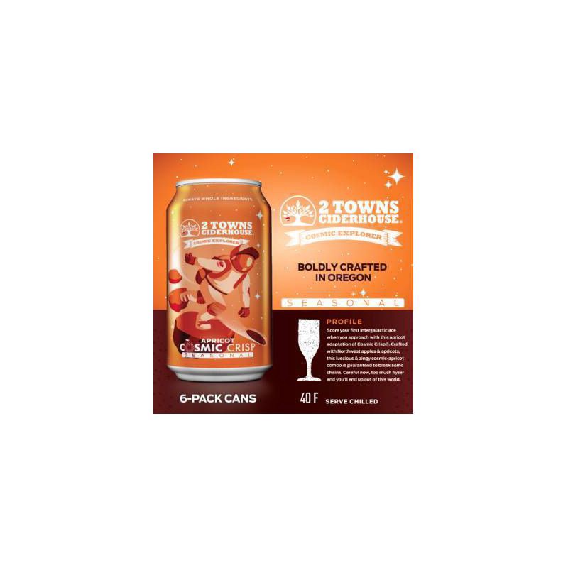 2 Towns Seasonal Cosmic Crisp - Score your first intergalactic ace when you approach with this apricot adaptation of Cosmic Crisp. Craftwed with Northwest apples and apricots, this luscious and zingy …