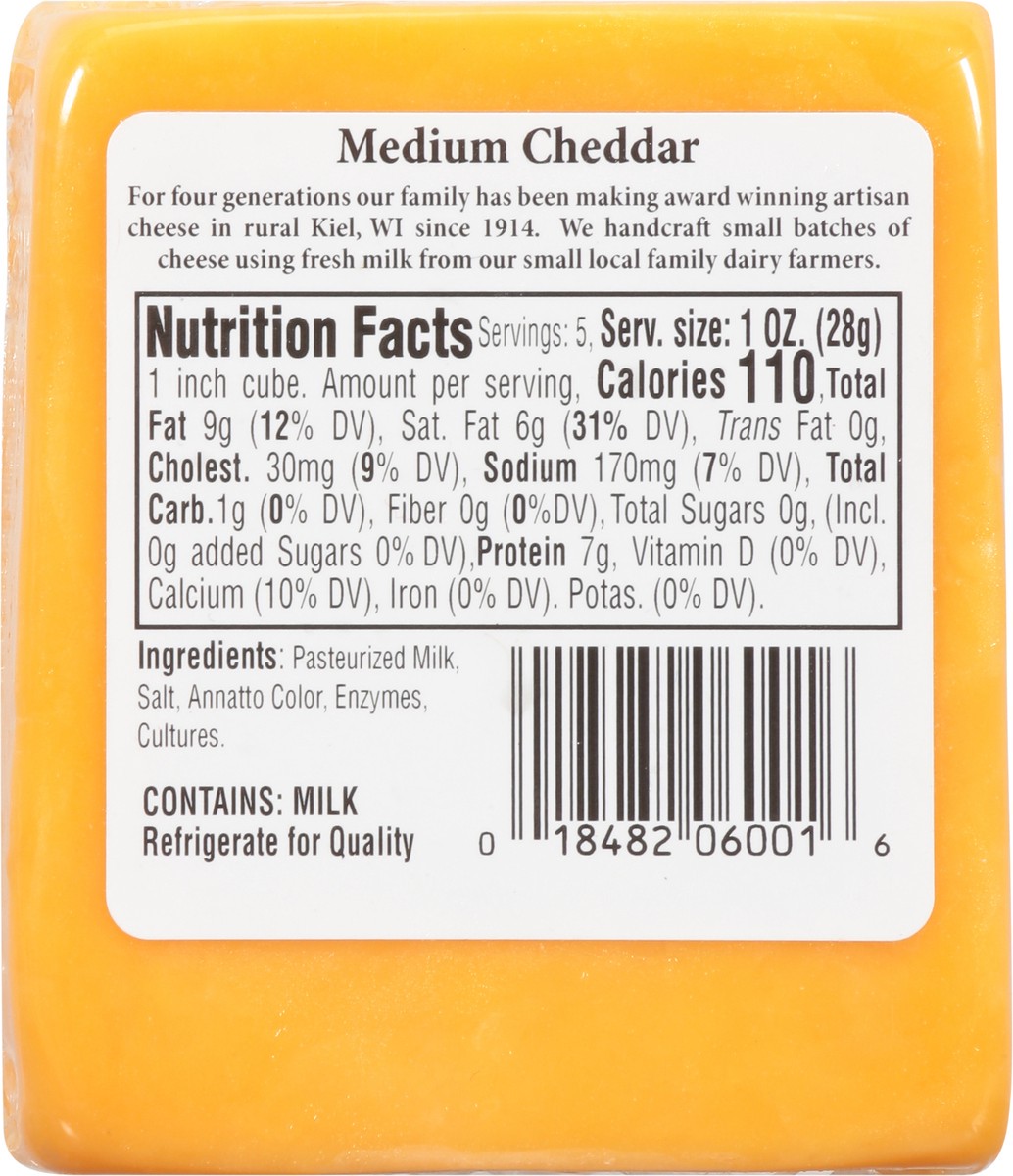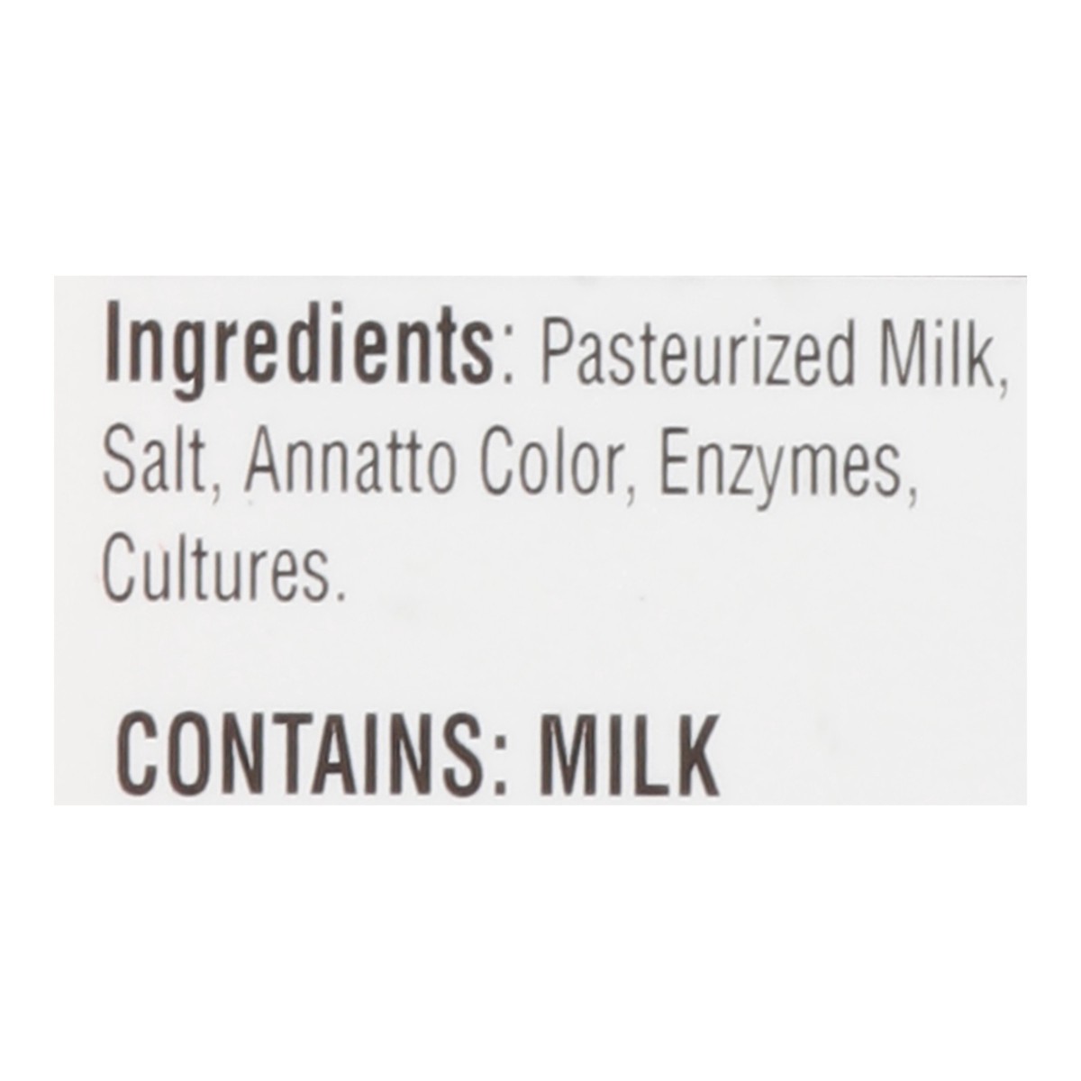 Pasteurized Milk, Salt, Annatto Color, Enzymes, Cultures.