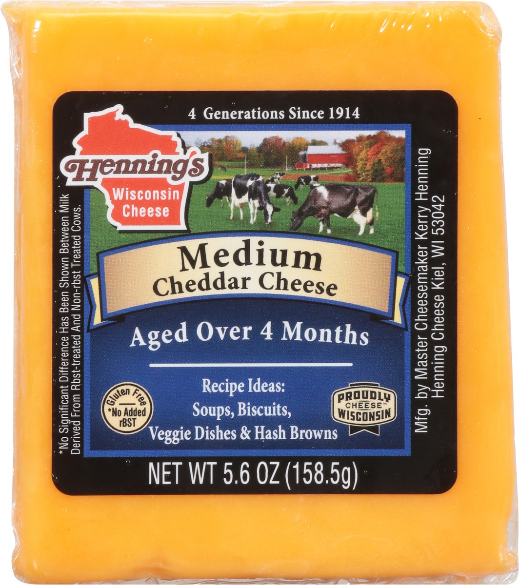Henning’s Cheese traditional Medium Cheddar has been handcrafted and allowed to cure in the perfect environment for at least 4 months. You will notice a touch of nuttiness with slightly sweet cheddar …