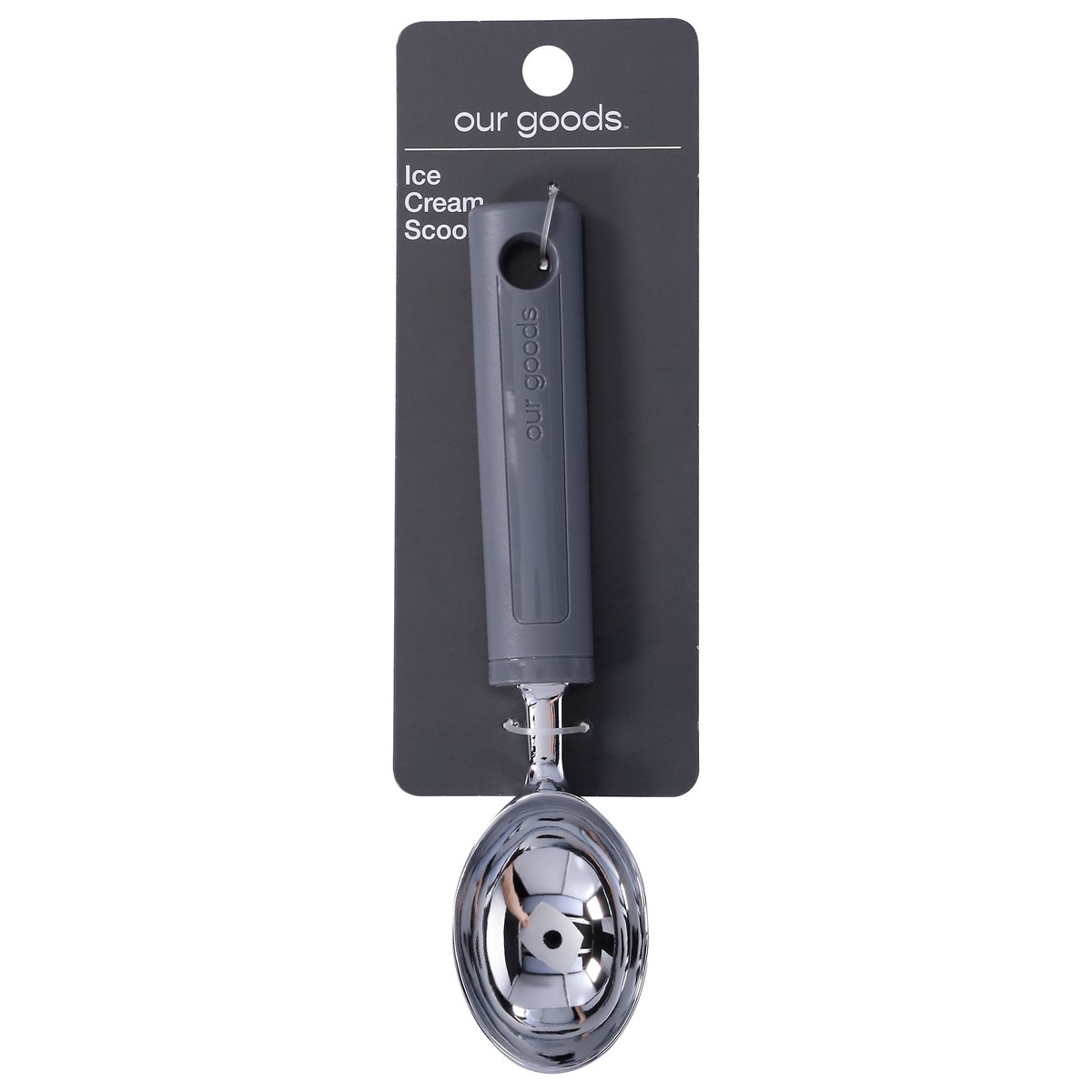 Dish up perfectly round ice cream scoops with this our goods ice cream scooper. This handy tool glides through ice cream, creating exact portions for sundaes and cones. Say goodbye to messy spills, an…