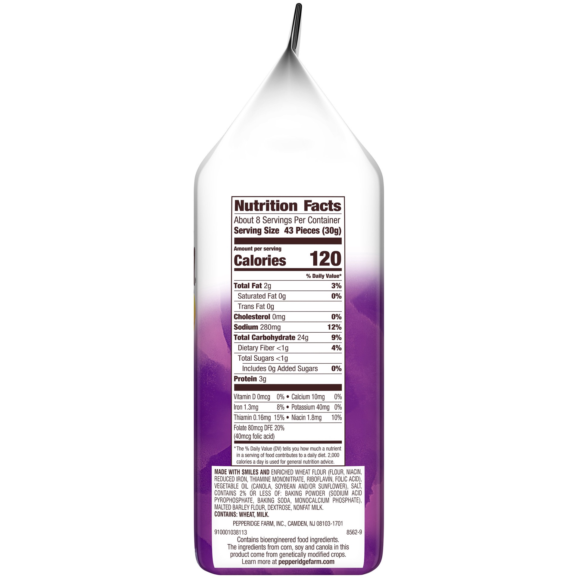 MADE WITH SMILES AND ENRICHED WHEAT FLOUR (FLOUR, NIACIN, REDUCED IRON, THIAMINE MONONITRATE, RIBOFLAVIN, FOLIC ACID), VEGETABLE OIL (CANOLA, SOYBEAN AND/OR SUNFLOWER), SALT, CONTAINS 2% OR LESS OF: B…