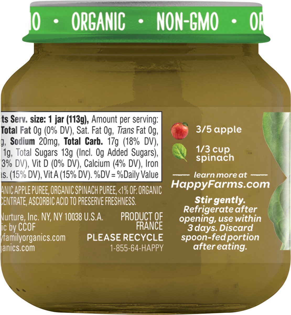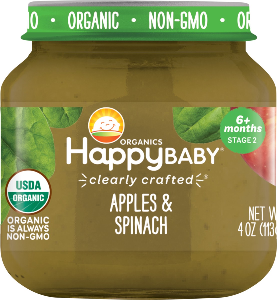 - New clear packaging so you can see what you''re feeding your baby4 oz. glass jarApples & Spinach flavorDeveloped for babies aged 6 months+, but great for any little one exploring the world of solid foodsPackaging made without BPA