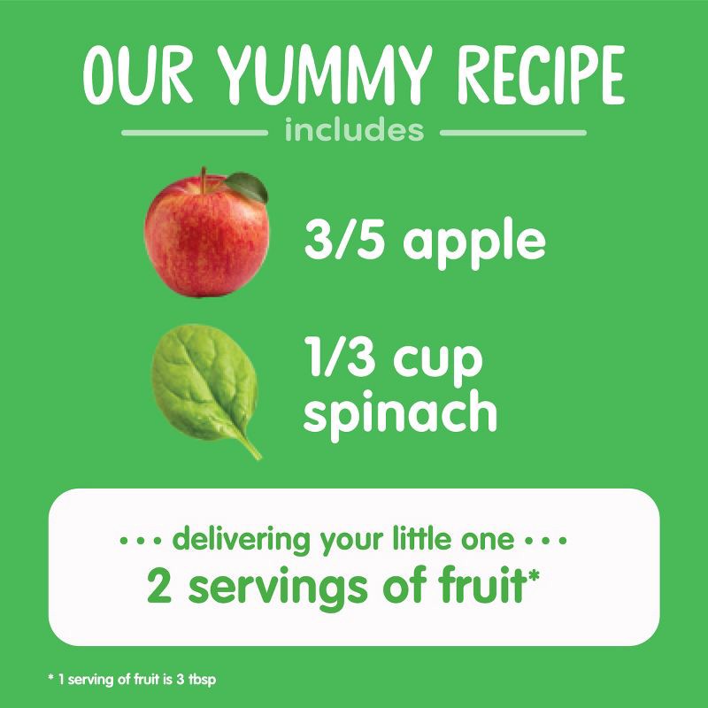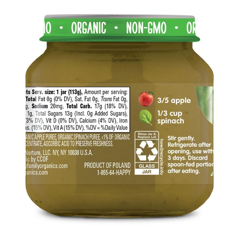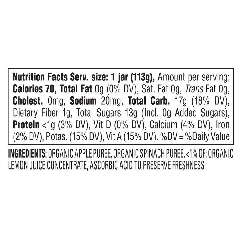 - In every jar: 3/5 organic apple & 1/3 cup organic spinach