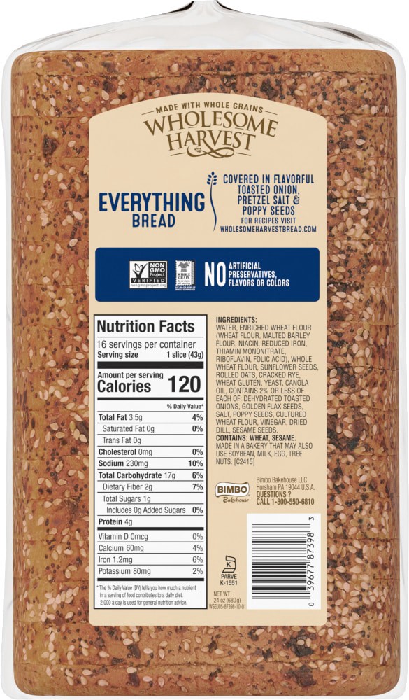 Enriched Wheat Flour (Wheat Flour, Malted Barley Flour, Niacin, Reduced Iron, Thiamin Mononitrate, Riboflavin, Folic Acid), Water, Whole Wheat Flour, Sunflower Seeds, Rolled Oats, Cracked Rye, Vegetab…