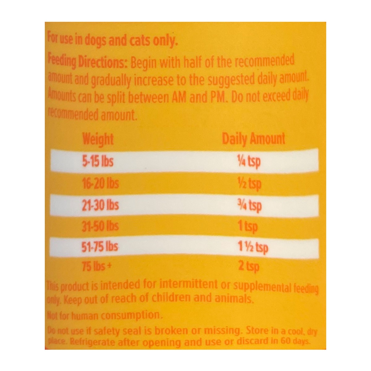 Calorie Content (calculated) Metabolizable Energy (ME): 8610 kcal/kg and 42 kcal/teaspoon