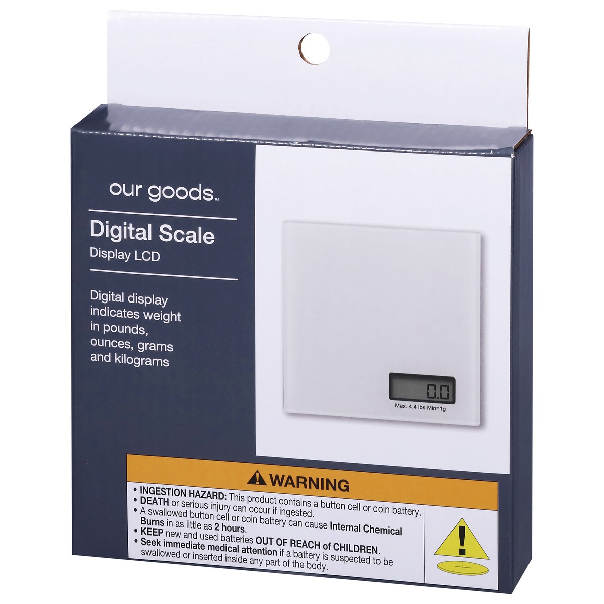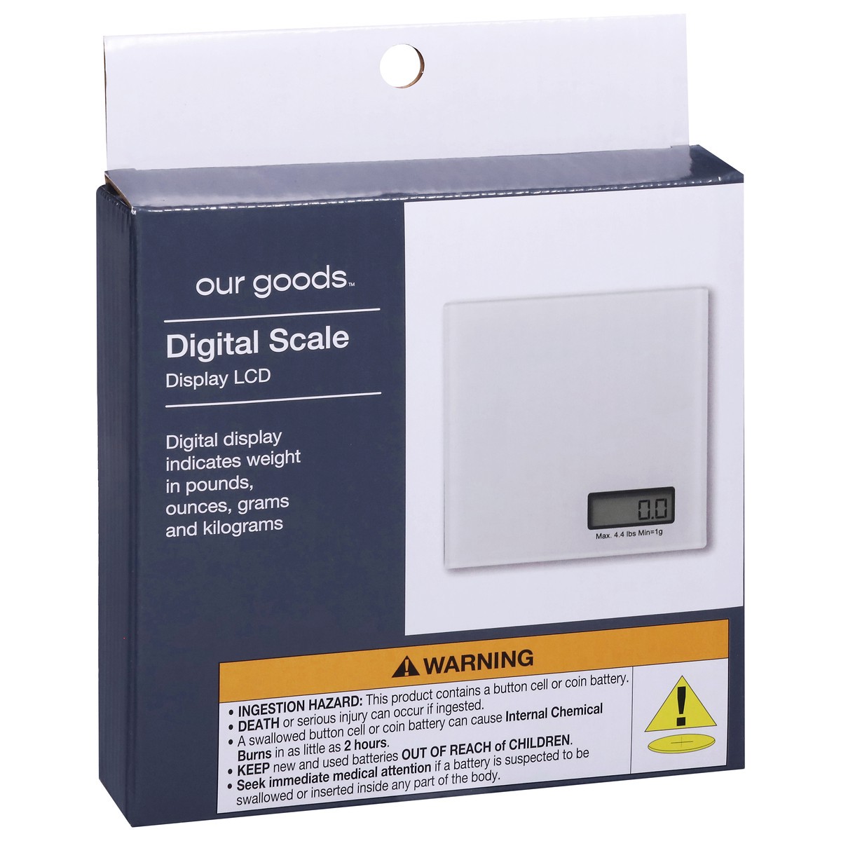 Level up your meal prep with this our goods digital kitchen scale. Simply place your ingredients on the platform for instant, accurate weight readings displayed on the clear screen. Take the guesswork…