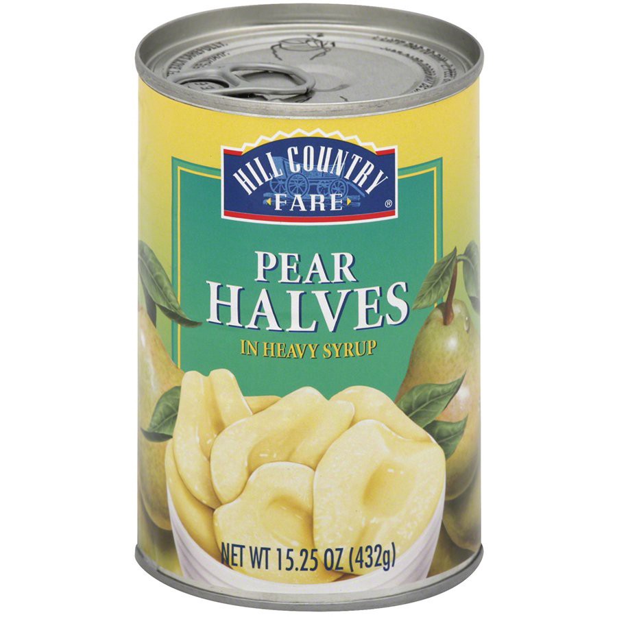 Packed in heavy syrup, Hill Country Fare Pear Halves are a great snack any season. Easy to store in your pantry, they're useful for baking many types of desserts. Low in sodium, they have a light, swe…