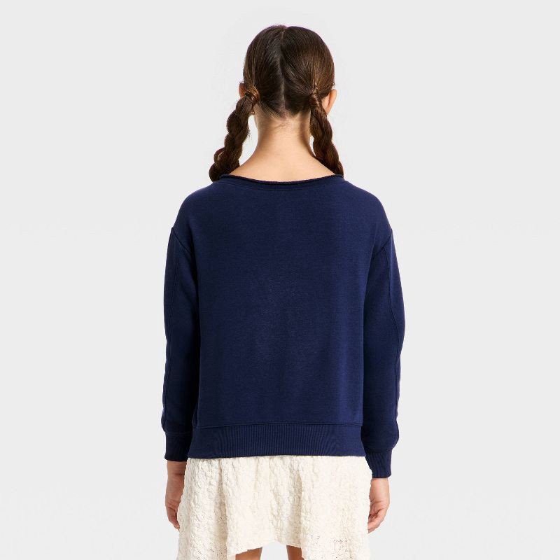 slide 1 of 4, Girls' "89" Off the Shoulder Graphic Sweatshirt - art class™ Blue L, 1 ct