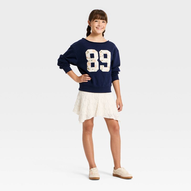 Girls' "89" Off the Shoulder Graphic Sweatshirt - art class™ Blue L